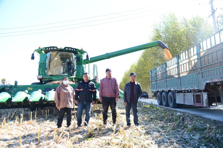 圖為吉林省松原市大洼鎮(zhèn)民樂(lè)村春峰種植專(zhuān)業(yè)合作社秋收?qǐng)鼍啊?新華社記者徐子恒攝)