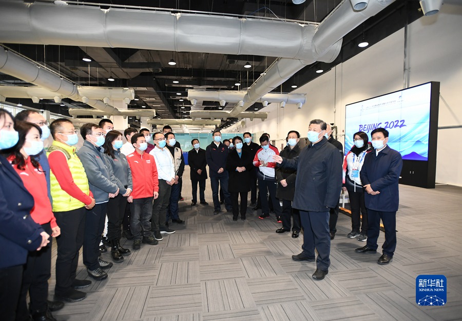 1月4日,中共中央總書記、國家主席、中央軍委主席習(xí)近平在北京考察2022年冬奧會(huì)、冬殘奧會(huì)籌辦備賽工作。這是4日上午,習(xí)近平在北京冬奧會(huì)、冬殘奧會(huì)主媒體中心媒體工作間,同正在做準(zhǔn)備的國內(nèi)媒體記者代表親切交流。新華社記者 謝環(huán)馳 攝
