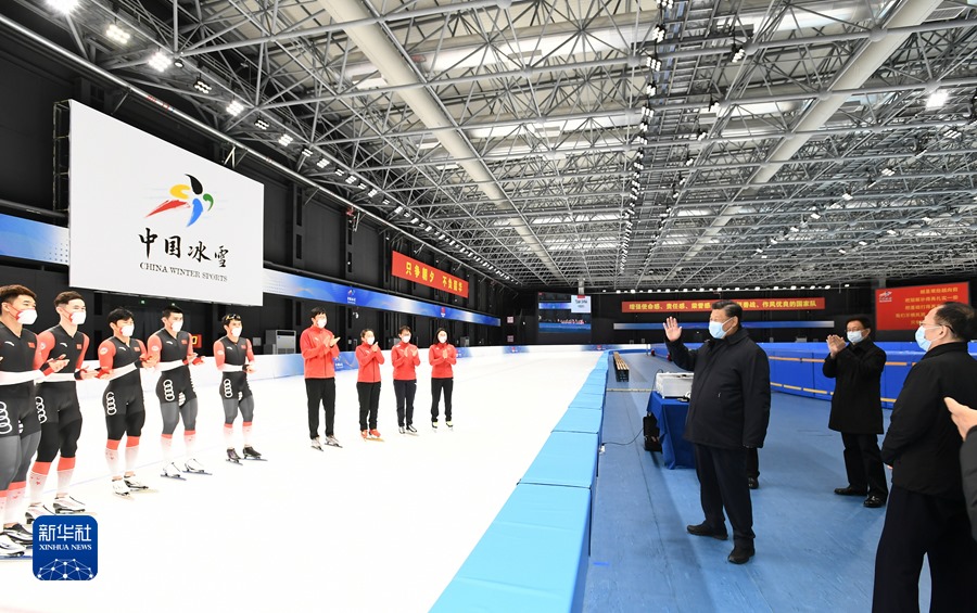 2022年1月4日,中共中央總書記、國家主席、中央軍委主席習近平在北京考察2022年冬奧會、冬殘奧會籌辦備賽工作。這是4日下午,習近平在二七廠冰雪項目訓練基地速滑館,向參訓運動員、教練員表示慰問。新華社記者謝環(huán)馳攝