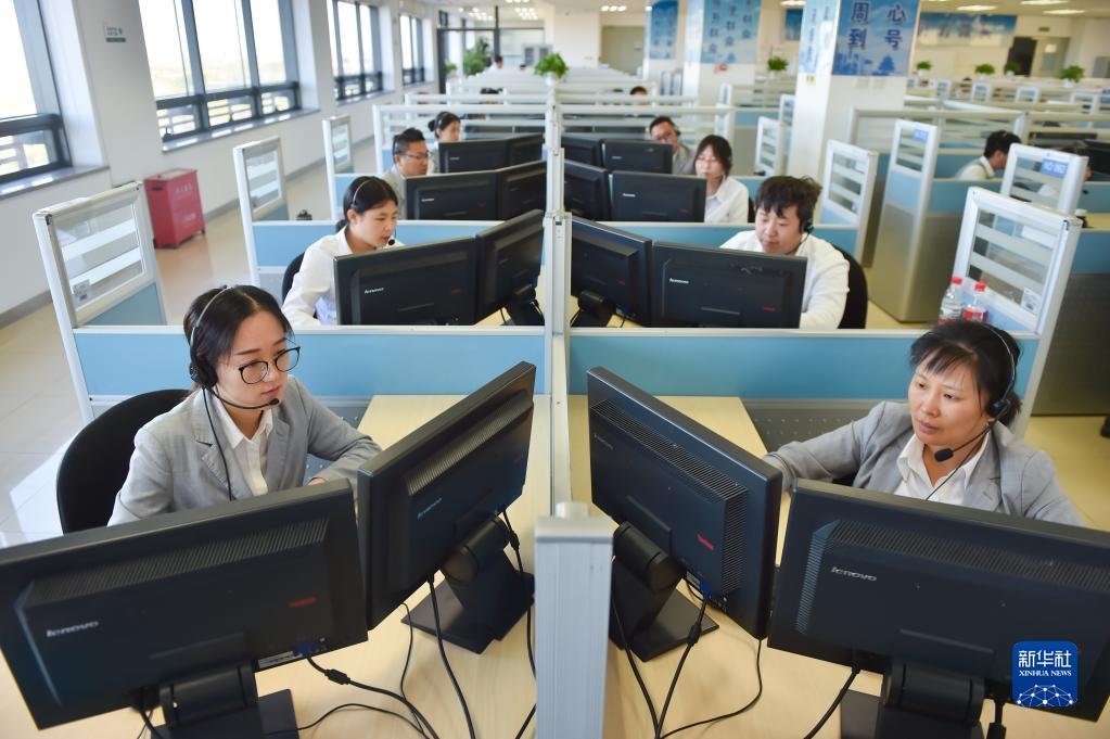 在位于北京亦莊的12345市民熱線話務(wù)大廳,工作人員接聽(tīng)熱線電話(2019年11月13日攝)。新華社記者彭子洋攝