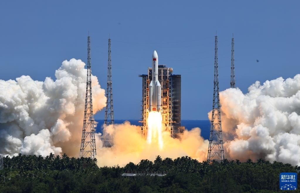 2022年7月24日,搭載問天實(shí)驗(yàn)艙的長(zhǎng)征五號(hào)B遙三運(yùn)載火箭,在我國文昌航天發(fā)射場(chǎng)點(diǎn)火發(fā)射。新華社記者李剛攝