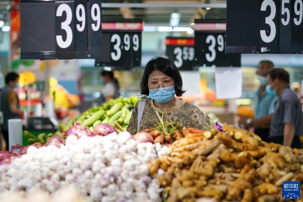 市民在江蘇省無錫市經(jīng)開區(qū)華潤(rùn)萬家超市購物(2022年7月7日攝)。江蘇省無錫市在做好疫情防控的同時(shí),積極制定相關(guān)方案,制作城市保供地圖,組織大型商超、市場(chǎng)正常運(yùn)營,全力保供穩(wěn)價(jià),端穩(wěn)市民“菜籃子”。新華社記者李博攝