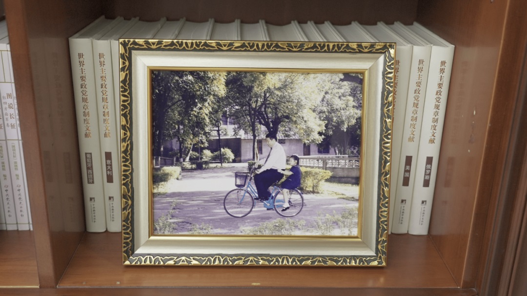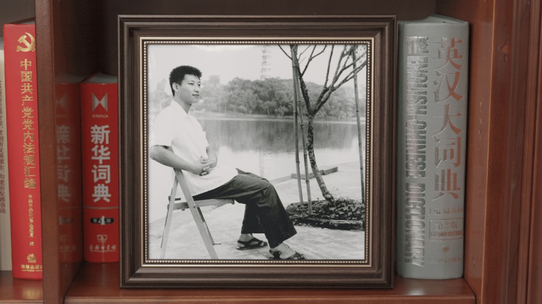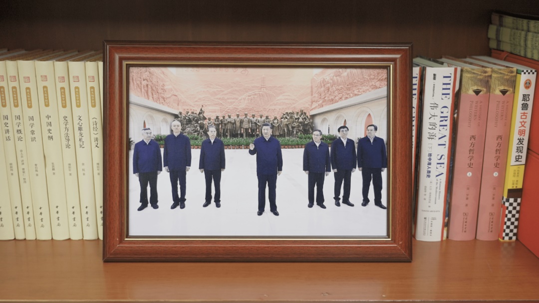 書(shū)架上,還增加了兩張習(xí)近平總書(shū)記年輕時(shí)的照片。