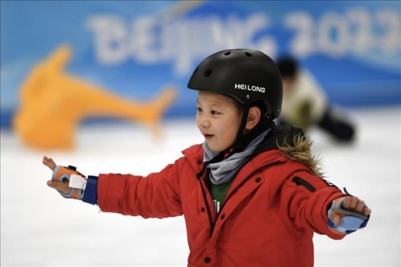 2023年1月22日,一位小朋友在國家速滑館滑冰。新華社記者 任超 攝