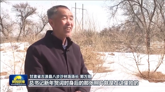 甘肅省古浪縣八步沙林場場長 郭萬剛:總書記新年賀詞時身后的那張照片就是在這里拍的,他叮囑我們要把身體保護好才能把沙治好,把日子過好,治沙就是為了更好的生活。