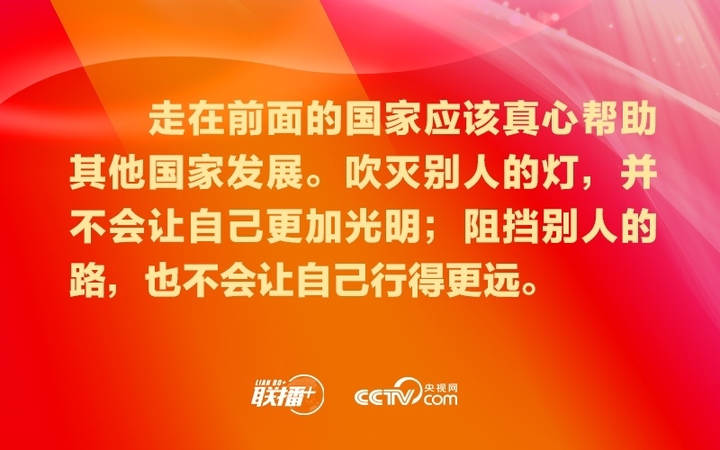 要堅(jiān)持共享機(jī)遇、共創(chuàng)未來(lái),共同做大人類社會(huì)現(xiàn)代化的“蛋糕”,努力讓現(xiàn)代化成果更多更公平惠及各國(guó)人民,堅(jiān)決反對(duì)通過(guò)打壓遏制別國(guó)現(xiàn)代化來(lái)維護(hù)自身發(fā)展“特權(quán)”。