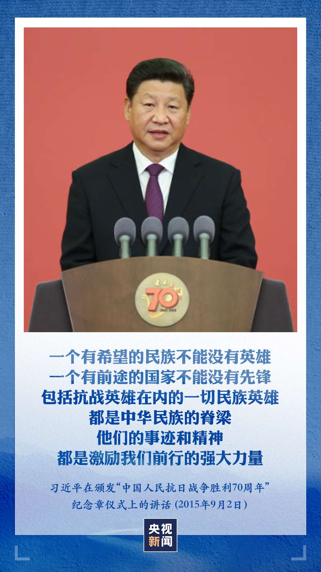 “一個(gè)有希望的民族不能沒(méi)有英雄,一個(gè)有前途的國(guó)家不能沒(méi)有先鋒?!绷?xí)近平總書記強(qiáng)調(diào),包括抗戰(zhàn)英雄在內(nèi)的一切民族英雄,都是中華民族的脊梁,他們的事跡和精神都是激勵(lì)我們前行的強(qiáng)大力量。