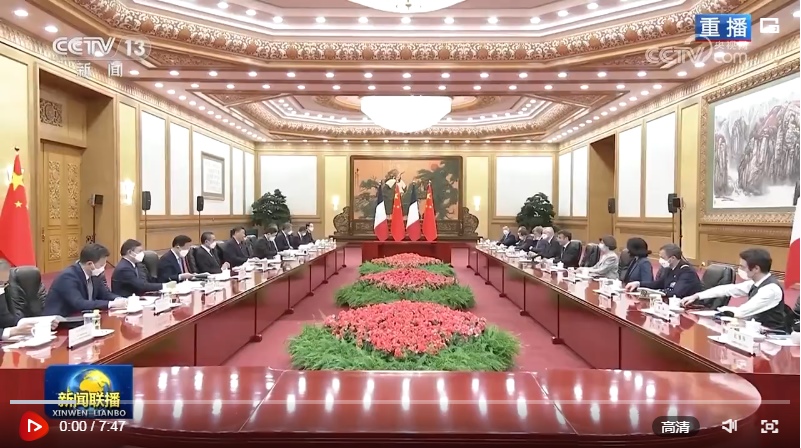 馬克龍表示,我對(duì)3年多前訪華情景記憶猶新,非常高興再次訪華,同習(xí)近平主席共同探討進(jìn)一步提升法中全面戰(zhàn)略伙伴關(guān)系。我完全贊同習(xí)近平主席對(duì)法中關(guān)系的積極評(píng)價(jià)以及就發(fā)展雙邊關(guān)系提出的重要建議。明年法中將共同慶祝建交60周年。60年來(lái),法中關(guān)系保持了穩(wěn)定健康發(fā)展。雖然法中兩國(guó)發(fā)展模式不同,但雙方相互尊重,坦誠(chéng)交流,各領(lǐng)域合作實(shí)現(xiàn)了互利互惠,同時(shí)在合作應(yīng)對(duì)當(dāng)今世界面臨的全球性挑戰(zhàn)方面取得重要進(jìn)展。法方尊重并奉行一個(gè)中國(guó)政策。我此次率龐大代表團(tuán)訪華,就是希望同中方加強(qiáng)合作,促進(jìn)人文交流。法方祝賀中方成功舉辦昆明-蒙特利爾《生物多樣性公約》第十五次締約方大會(huì),希望繼續(xù)在氣候變化、糧食安全等問(wèn)題上同中方密切溝通合作。中方將舉辦第三屆“一帶一路”國(guó)際合作高峰論壇,法方愿同中方就此開(kāi)展合作。法方贊賞中方始終遵守聯(lián)合國(guó)憲章宗旨,為解決國(guó)際地區(qū)熱點(diǎn)問(wèn)題發(fā)揮積極作用,期待同中方密切溝通協(xié)作,努力實(shí)現(xiàn)世界的持久和平與穩(wěn)定。