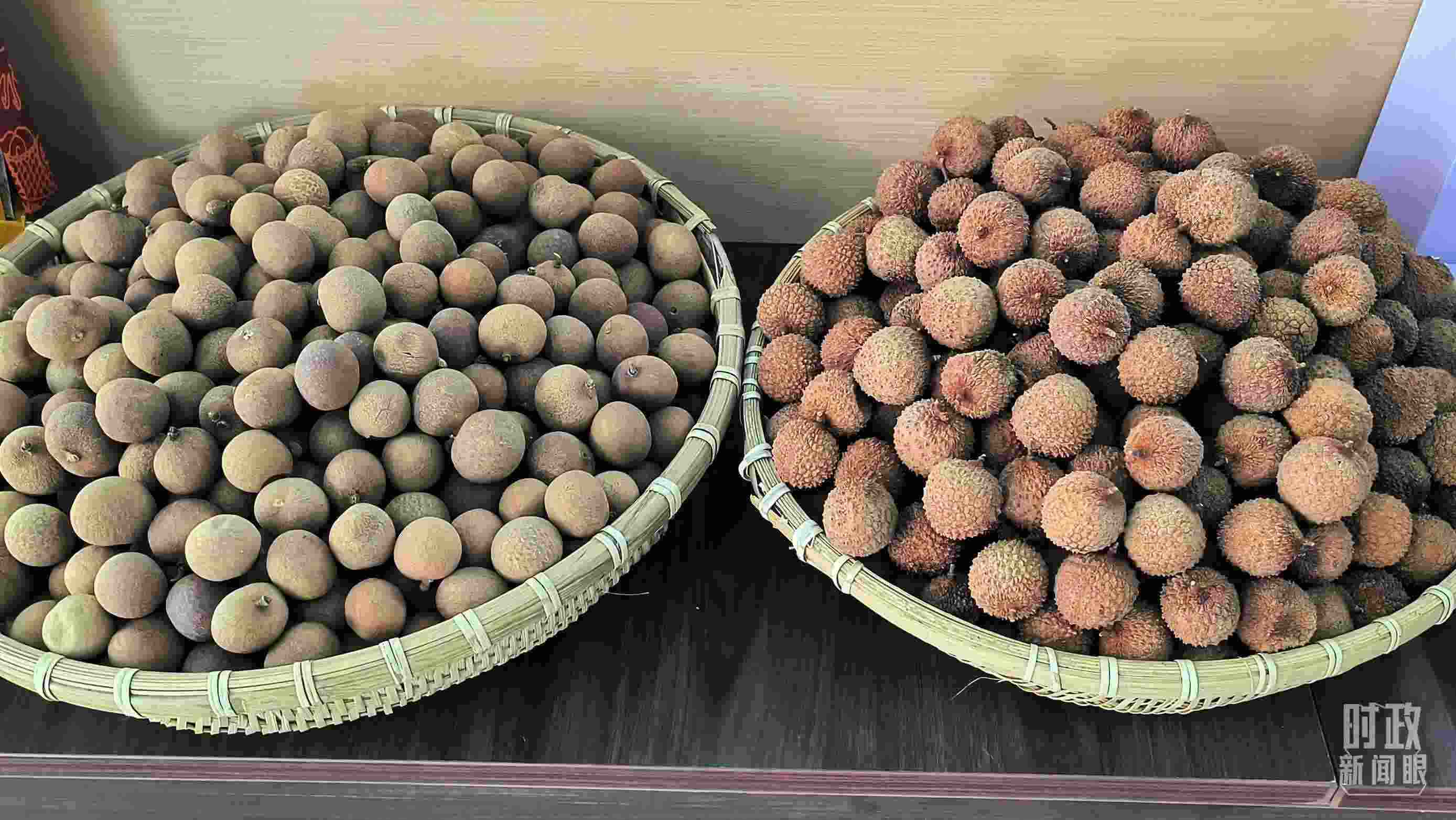 △合作社生產(chǎn)的龍眼干(左)和荔枝干(右)。(總臺(tái)央視記者范凱拍攝)