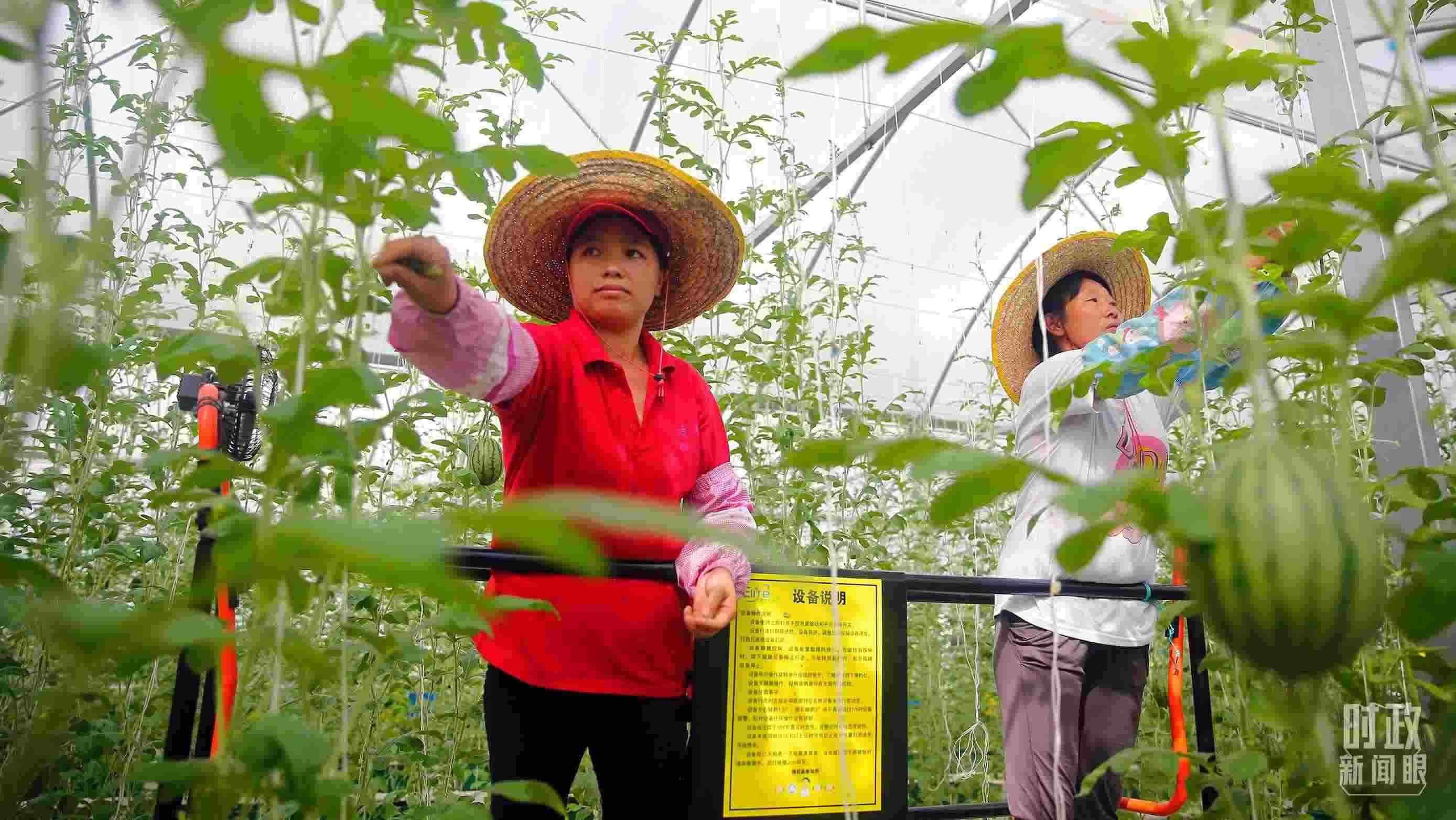 △廣東清遠(yuǎn)連樟村村民正在現(xiàn)代農(nóng)業(yè)科技示范園溫室大棚內(nèi)勞作。(圖/視覺中國)