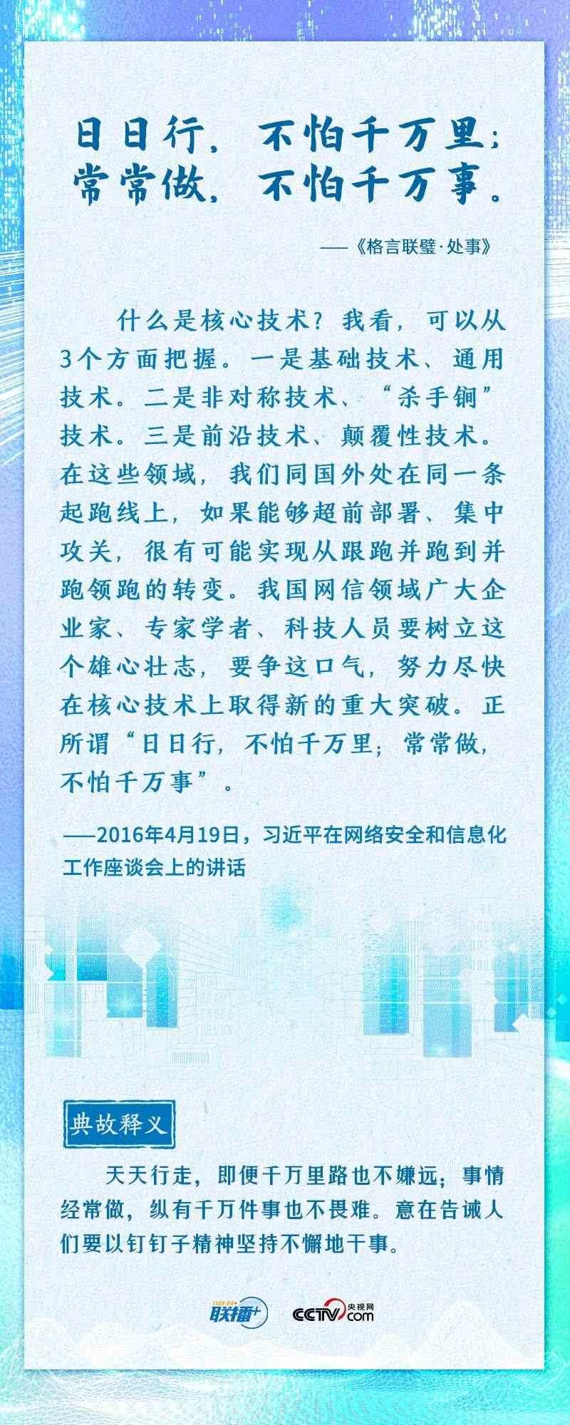 “知屋漏者在宇下,知政失者在草野”“日日行,不怕千萬里;常常做,不怕千萬事”......2016年4月19日,習近平總書記在網(wǎng)絡安全和信息化工作座談會上,從六個方面深刻回答了事關我國網(wǎng)信事業(yè)發(fā)展的一系列重大理論和實踐問題,并多次引經(jīng)據(jù)典加以闡述。