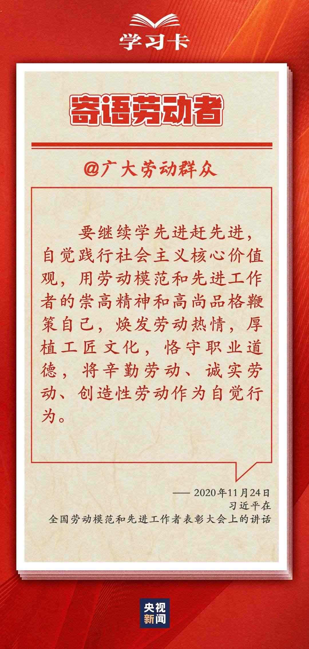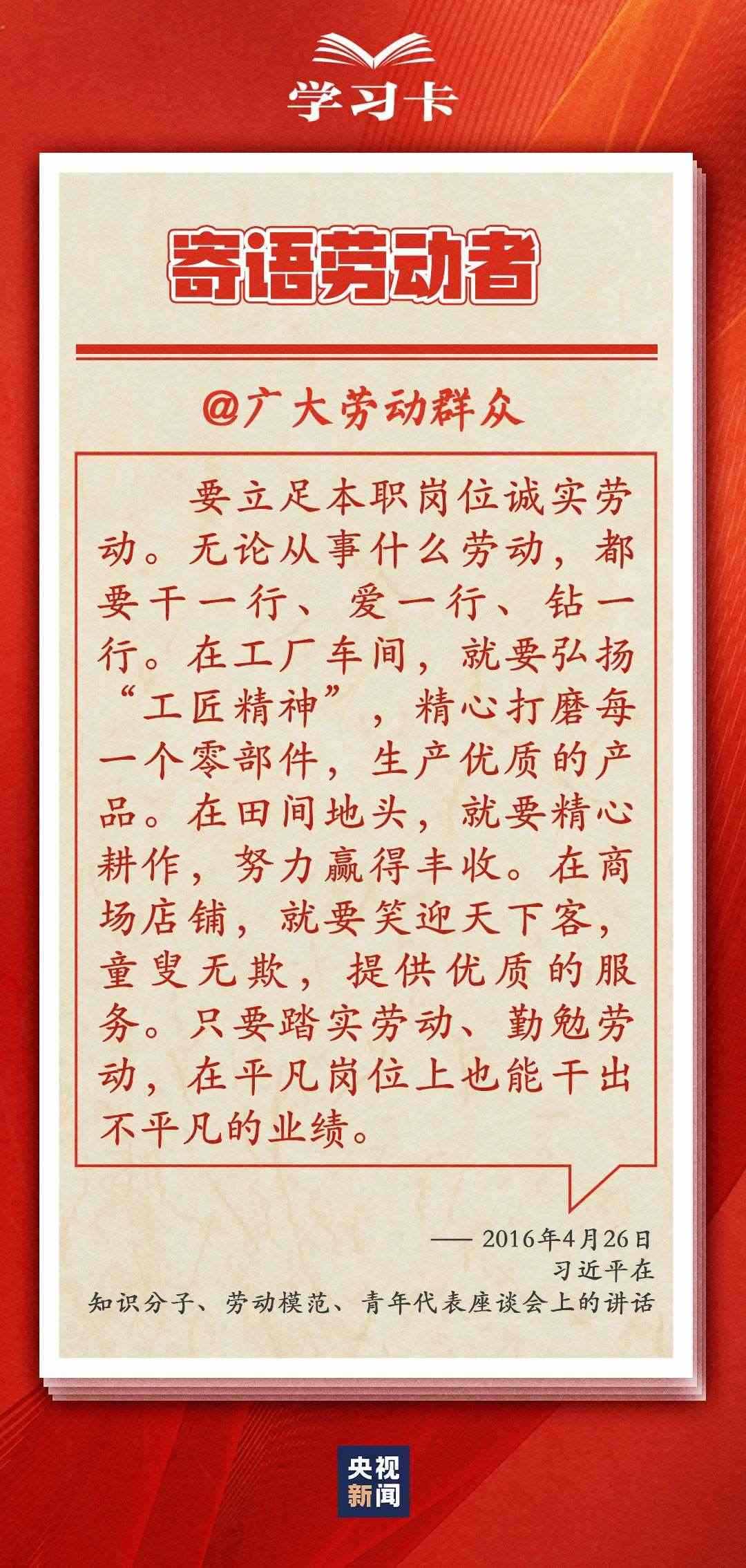 “社會(huì)主義是干出來的,新時(shí)代是奮斗出來的。”多年來,習(xí)近平總書記一直情系全國(guó)廣大勞動(dòng)者,多次強(qiáng)調(diào)無論時(shí)代條件如何變化,我們始終都要崇尚勞動(dòng)、尊重勞動(dòng)者。