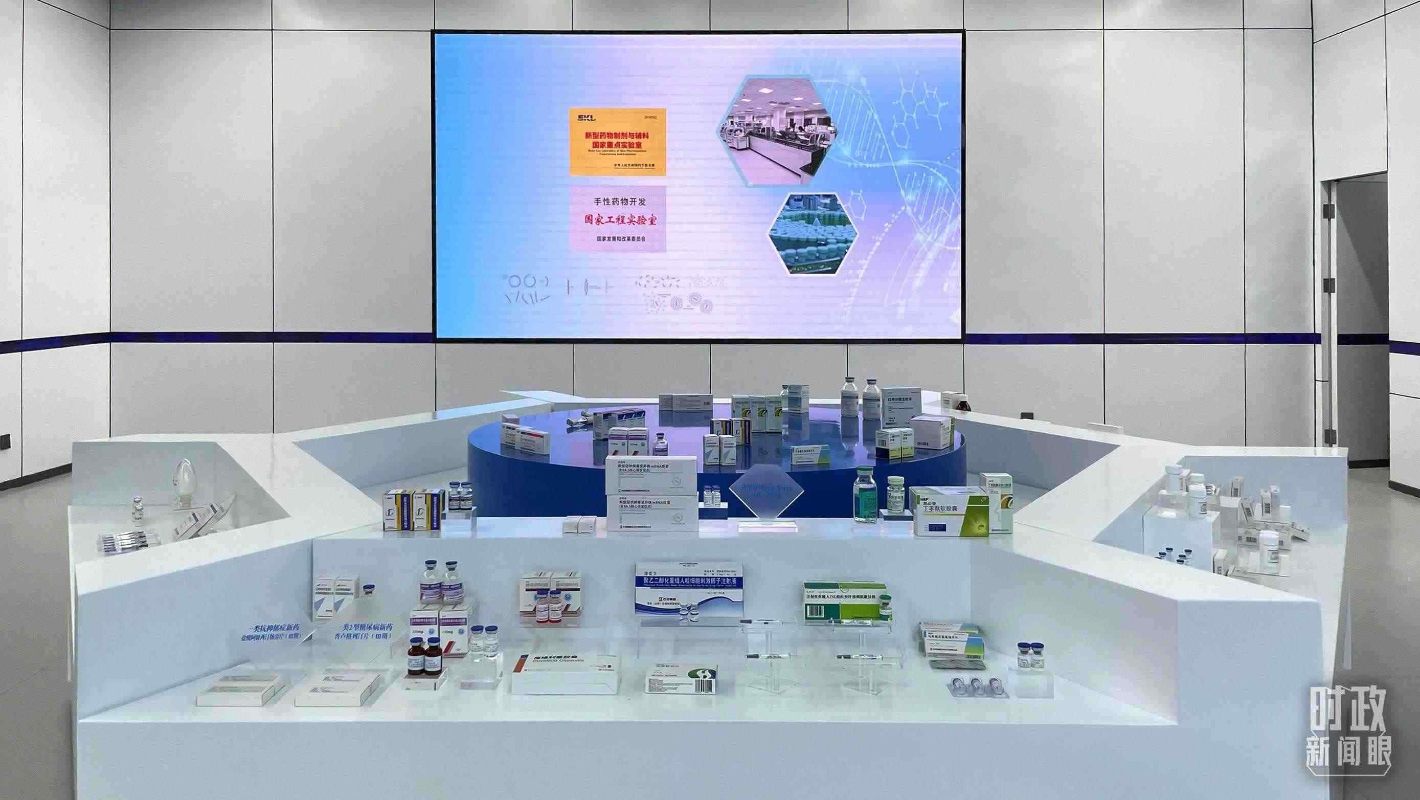 △石家莊國際生物醫(yī)藥園規(guī)劃展館內展示企業(yè)研發(fā)生產的藥品。(總臺央視記者蔣碩拍攝)