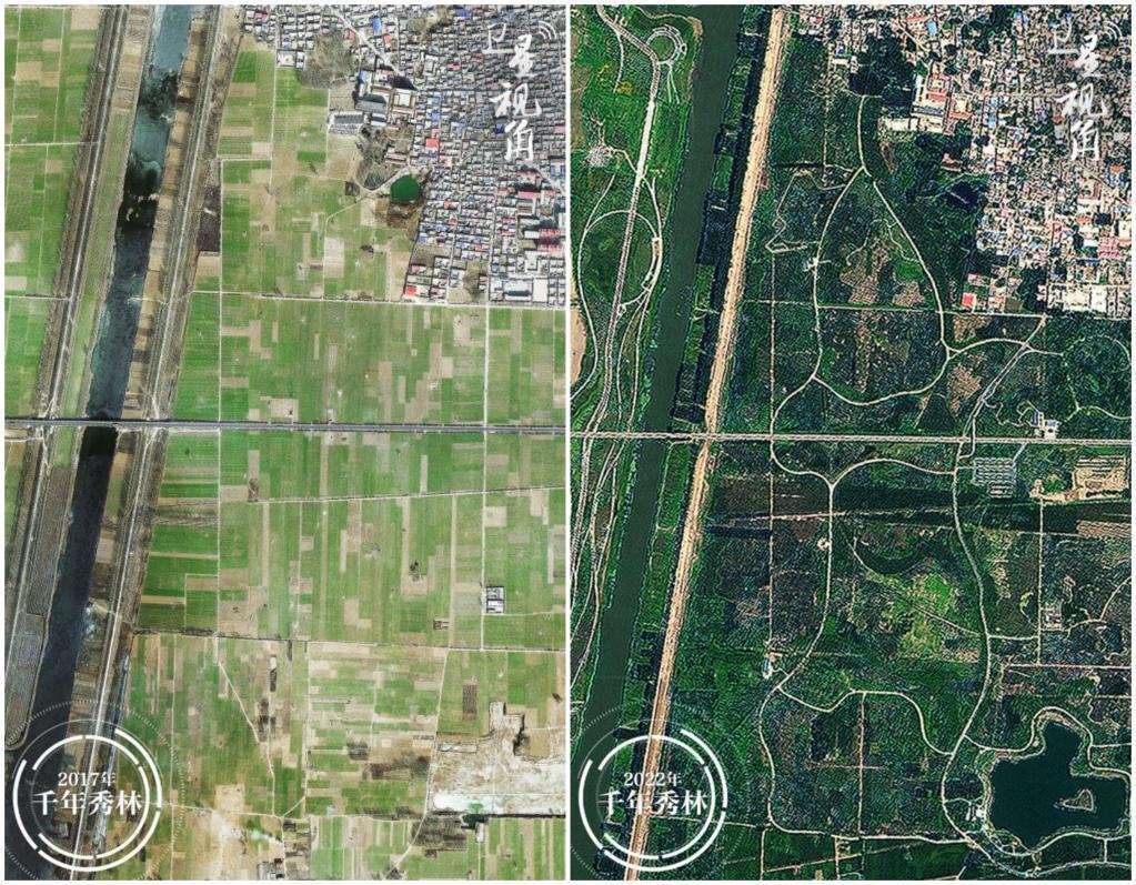 未建城,先植綠,千年大計從“千年秀林”開始。2017年11月13日,雄安新區(qū)“千年秀林”9號地塊栽下第一棵樹。如今,“千年秀林”工程累計造林47萬畝,悅?cè)莨珗@等一批高品質(zhì)休閑設(shè)施投用,雄安新區(qū)森林覆蓋率由11%提高到34%,營造出“城在林中,人在景中”的意趣。