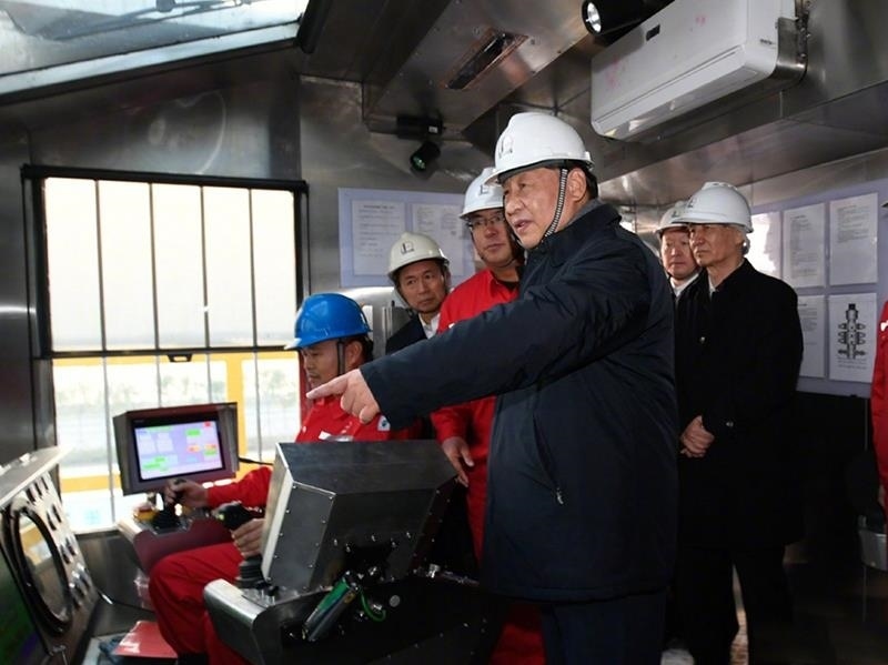 △2021年10月21日,習(xí)近平總書(shū)記來(lái)到勝利油田勘探開(kāi)發(fā)研究院和鉆井平臺(tái),了解油田創(chuàng)新發(fā)展等情況。