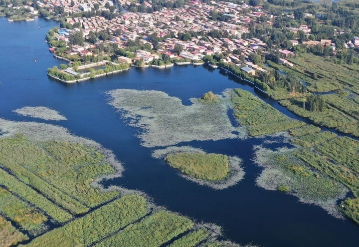 這是河北雄安新區(qū)白洋淀劃定的一處鳥(niǎo)類(lèi)棲息地(2022年9月21日攝,無(wú)人機(jī)照片)。新華社記者 朱旭東 攝