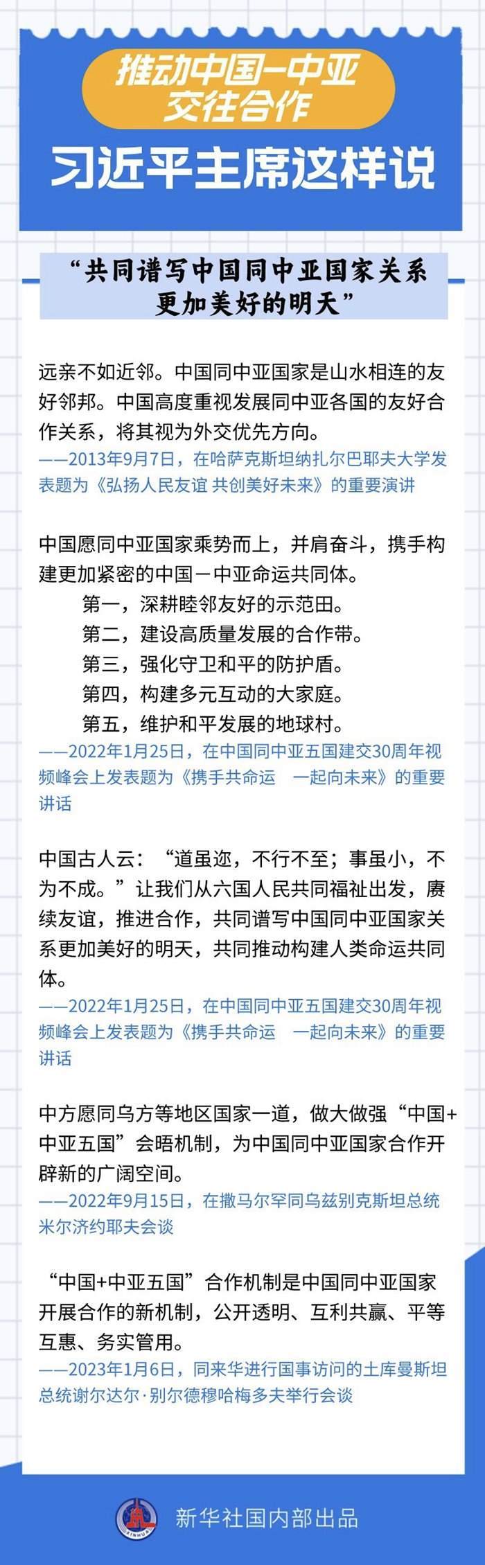 過去十年間,習(xí)近平主席同中亞五國領(lǐng)導(dǎo)人保持密切互動,引領(lǐng)中國同中亞國家政治互信不斷深化,務(wù)實合作提質(zhì)升級,國際協(xié)作走深走實。關(guān)于中國-中亞交往合作,習(xí)近平主席作出過哪些重要論述?一起來看——