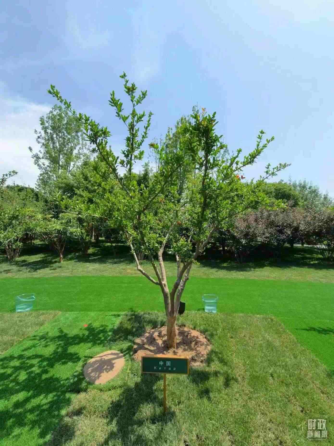 △ 象征中國同中亞緊密團(tuán)結(jié)合作的石榴樹。(總臺央視記者韓銳拍攝)