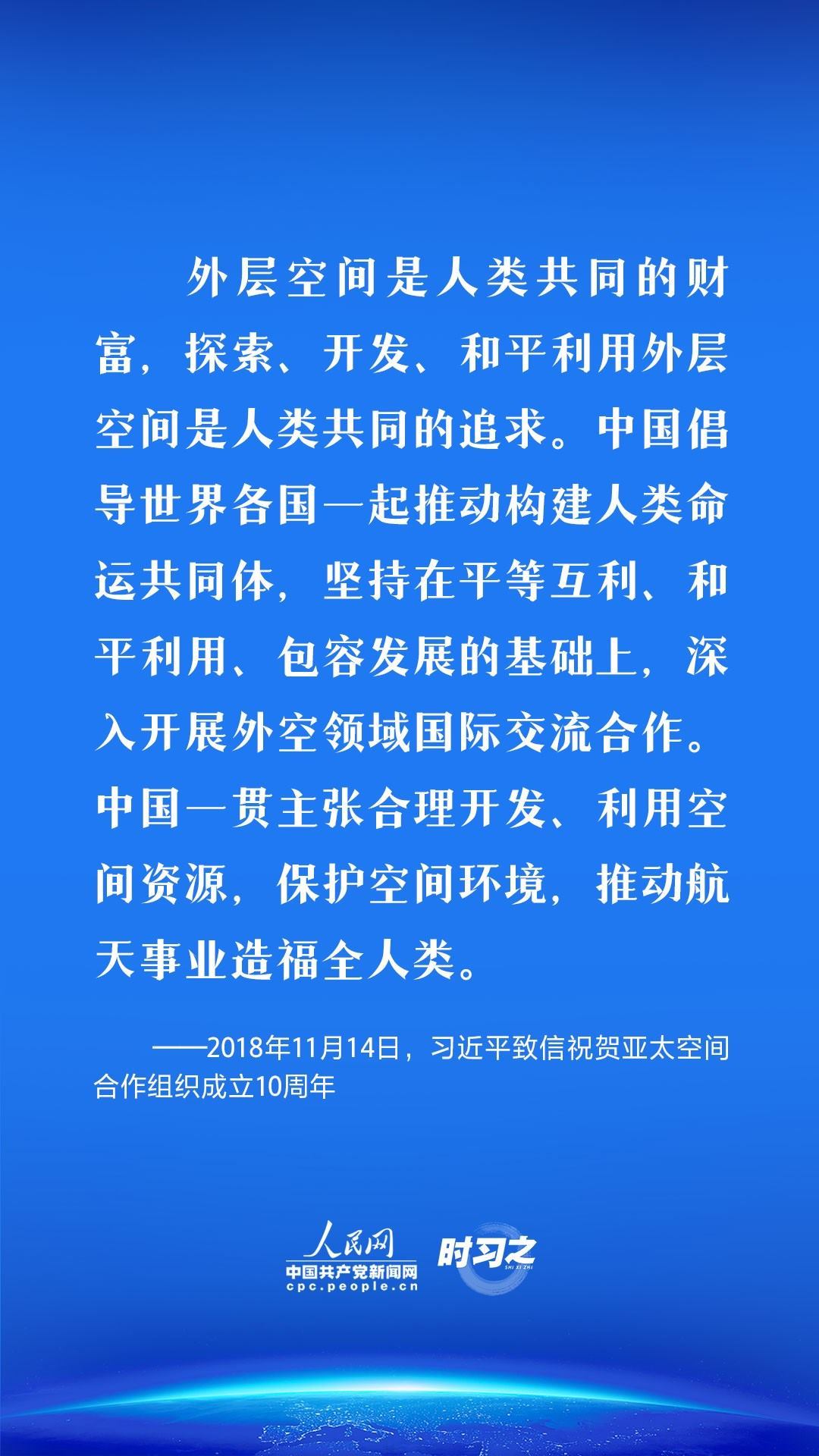 外層空間是人類共同的財(cái)富,探索、開發(fā)、和平利用外層空間是人類共同的追求。近年來,中國積極開展空間探索活動,不斷深化人類對宇宙的認(rèn)知,致力增進(jìn)人類共同福祉。習(xí)近平高度重視我國航天事業(yè)發(fā)展,多次作出重要論述和重要指示批示,倡導(dǎo)世界各國一起推動構(gòu)建人類命運(yùn)共同體,堅(jiān)持在平等互利、和平利用、包容發(fā)展的基礎(chǔ)上,深入開展外空領(lǐng)域國際交流合作。