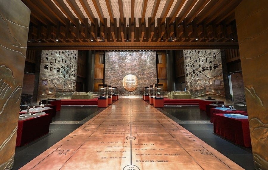 習(xí)近平走進(jìn)院內(nèi)的中國考古博物館,先后參觀文明起源和宅茲中國專題展,了解新石器時代和夏商周時期重大考古發(fā)現(xiàn),并不時詢問相關(guān)研究工作進(jìn)展。