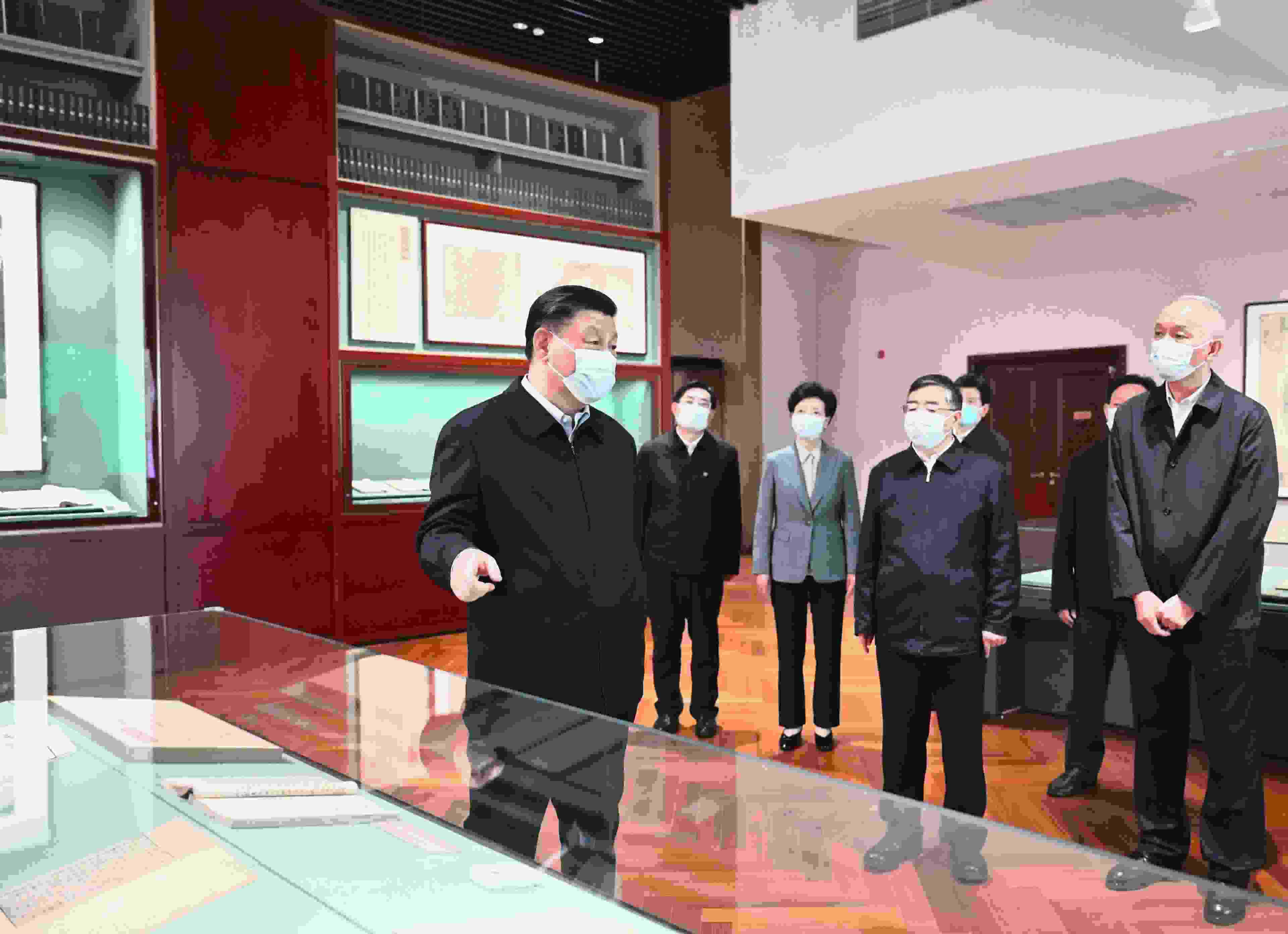 考察當(dāng)天,習(xí)近平總書記首先走進(jìn)文華堂,聽(tīng)取版本館規(guī)劃建設(shè)有關(guān)情況介紹。