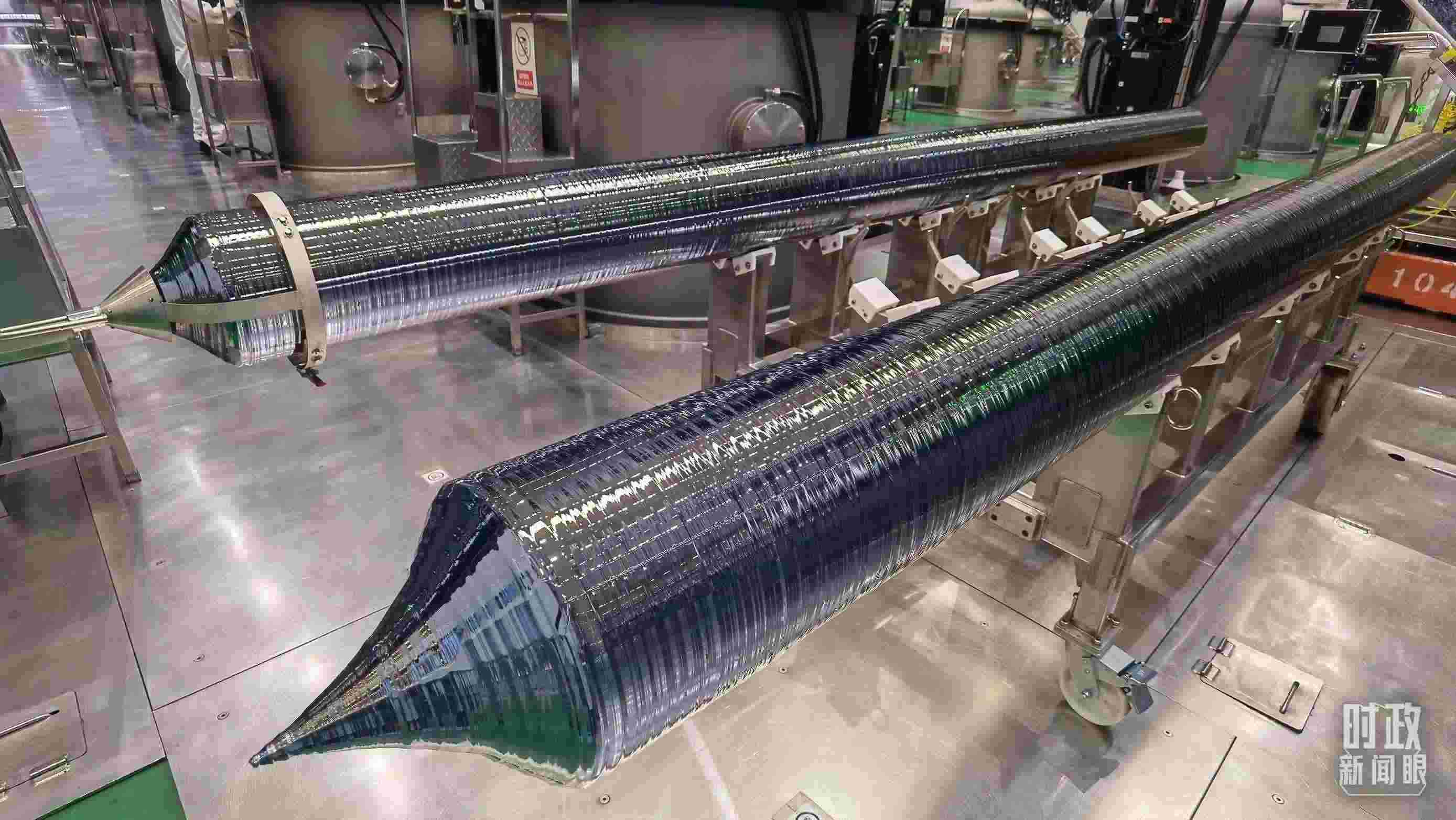 △園區(qū)企業(yè)生產(chǎn)的光伏單晶硅棒。(總臺(tái)央視記者石丞拍攝)