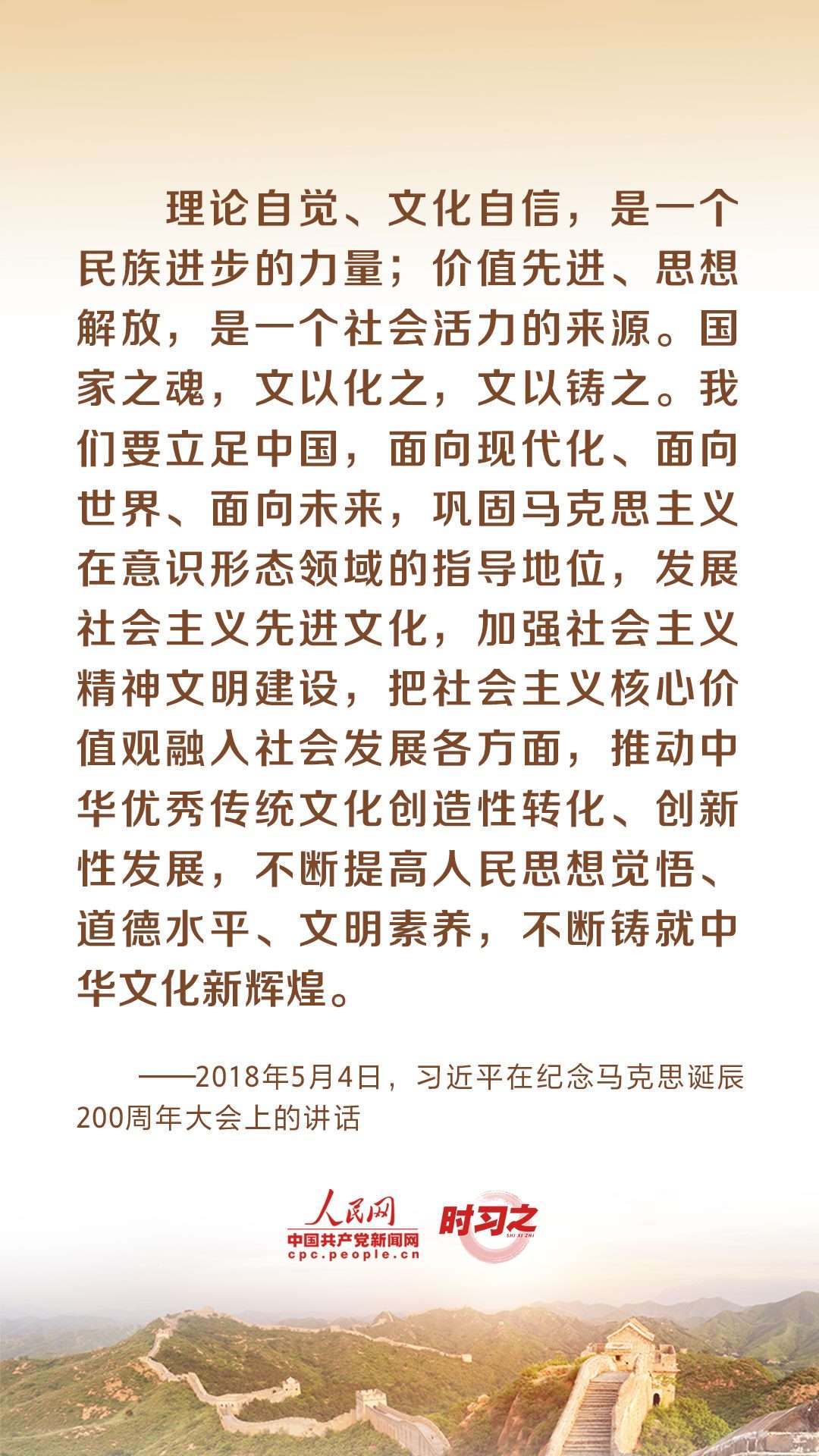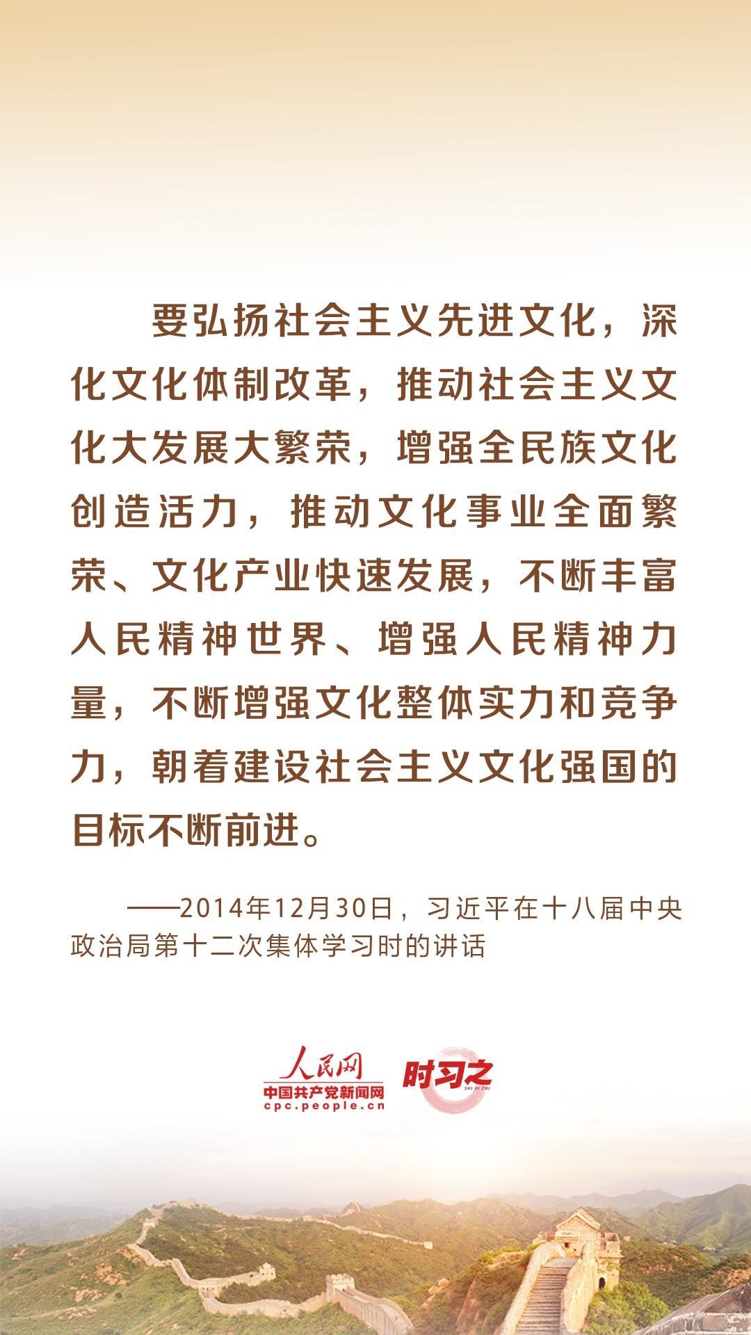 “理論自覺(jué)、文化自信,是一個(gè)民族進(jìn)步的力量;價(jià)值先進(jìn)、思想解放,是一個(gè)社會(huì)活力的來(lái)源?!秉h的十八大以來(lái),習(xí)近平總書(shū)記就文化建設(shè)提出了一系列新理念新思想新戰(zhàn)略,引領(lǐng)中華文化創(chuàng)造性轉(zhuǎn)化、創(chuàng)新性發(fā)展。推動(dòng)弘揚(yáng)和發(fā)展社會(huì)主義先進(jìn)文化,習(xí)近平多次作出重要闡釋。