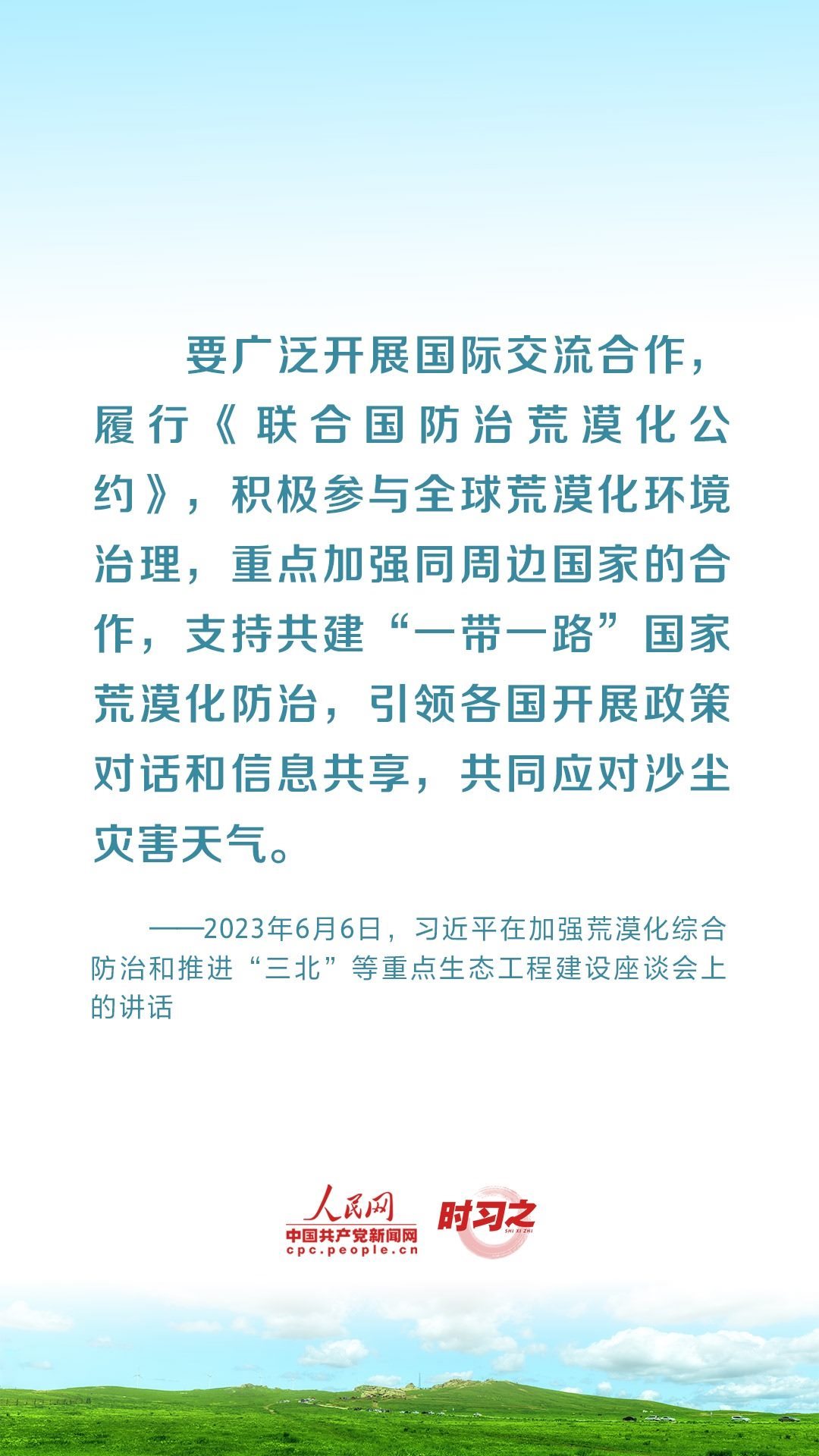 2023年6月5日至6日,中共中央總書記、國家主席、中央軍委主席習近平在內(nèi)蒙古自治區(qū)巴彥淖爾市考察,主持召開加強荒漠化綜合防治和推進“三北”等重點生態(tài)工程建設座談會并發(fā)表重要講話。座談會上,習近平對走好中國特色防沙治沙道路提出工作要求。