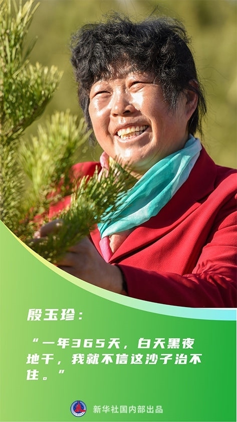 面對(duì)惡劣的環(huán)境,殷玉珍沒(méi)有退縮,生性倔強(qiáng)的她發(fā)誓:“我寧可種樹(shù)累死,也不能讓風(fēng)沙欺負(fù)死!”