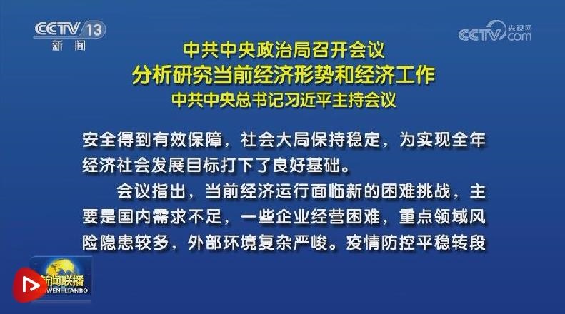 7月24日,中共中央政治局召開(kāi)會(huì)議,分析研究當(dāng)前經(jīng)濟(jì)形勢(shì),部署下半年經(jīng)濟(jì)工作。習(xí)近平總書記主持會(huì)議。