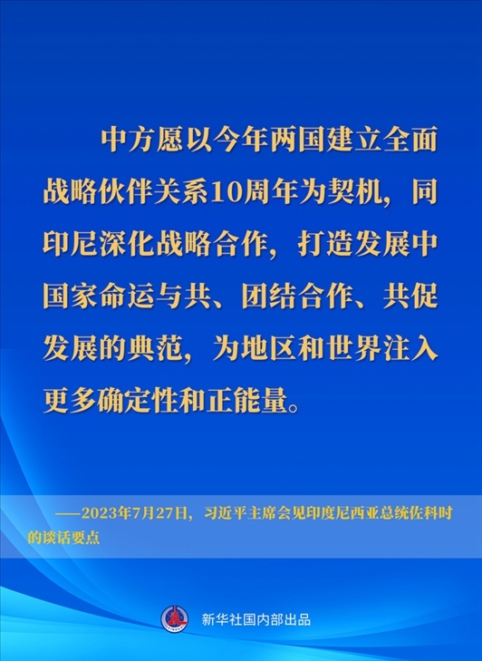 7月27日下午,國(guó)家主席習(xí)近平在成都會(huì)見(jiàn)來(lái)華出席第31屆世界大學(xué)生夏季運(yùn)動(dòng)會(huì)開幕式并訪華的印度尼西亞總統(tǒng)佐科。一起來(lái)看習(xí)近平主席在會(huì)見(jiàn)時(shí)的談話要點(diǎn)↓
