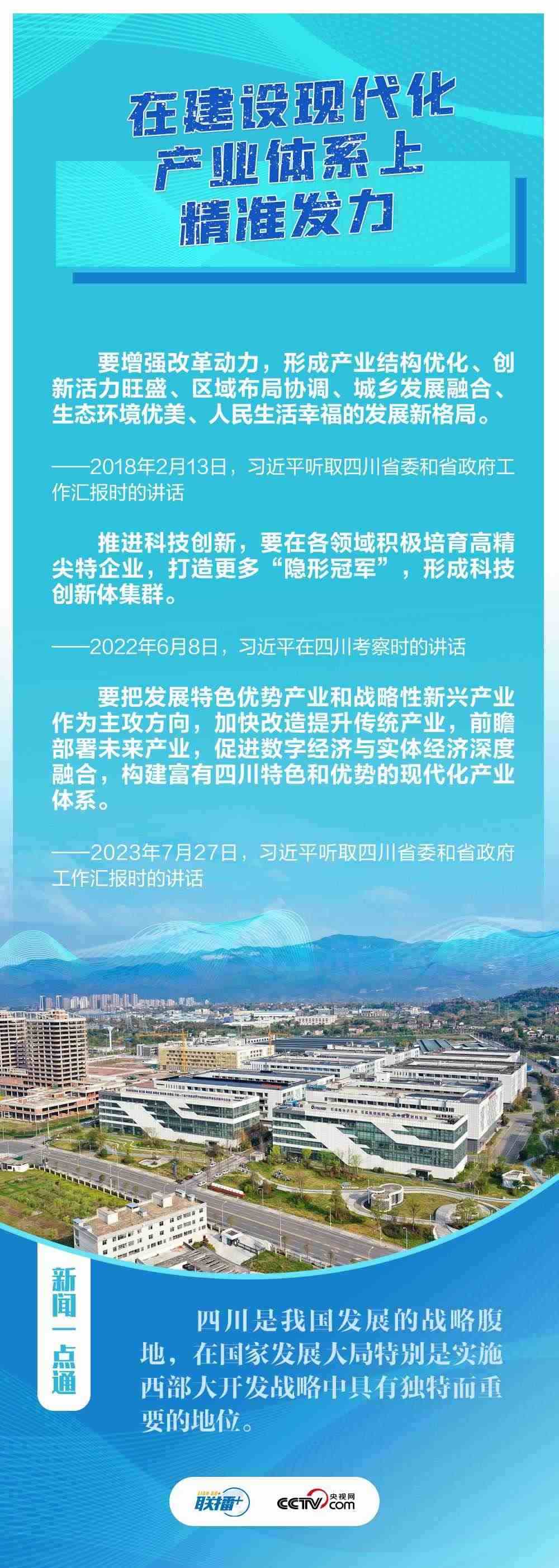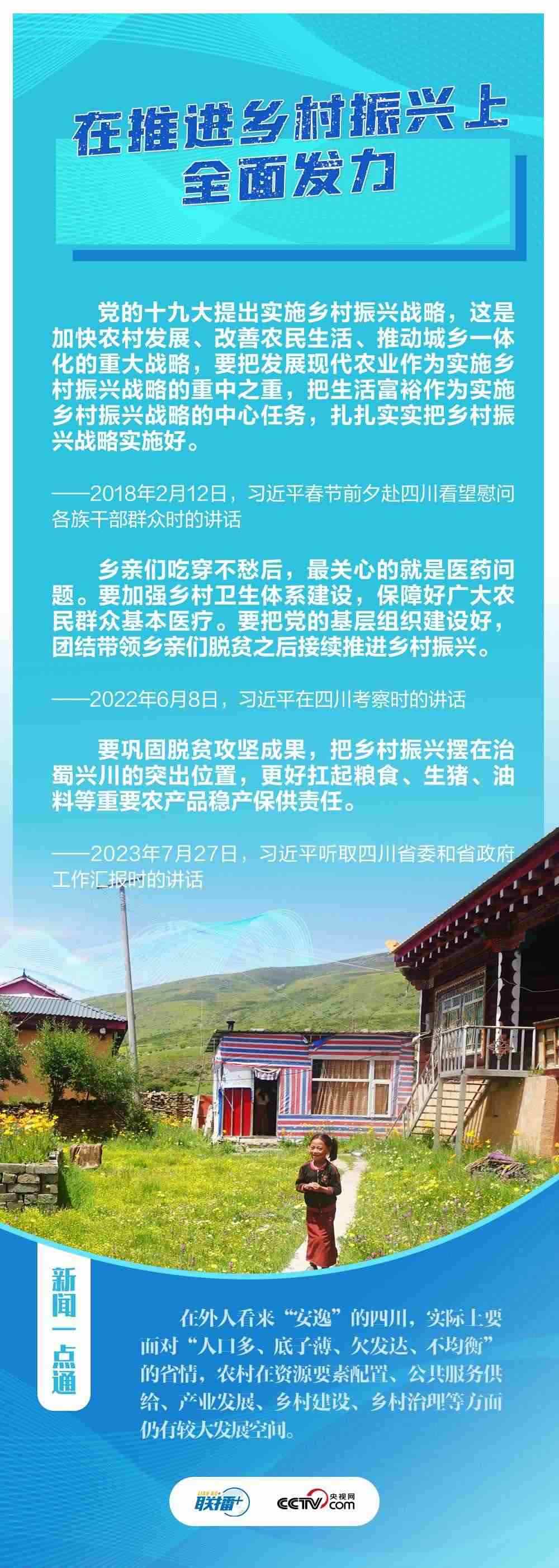 “希望四川在推進科技創(chuàng)新和科技成果轉化上同時發(fā)力,在建設現代化產業(yè)體系上精準發(fā)力,在推進鄉(xiāng)村振興上全面發(fā)力,在筑牢長江黃河上游生態(tài)屏障上持續(xù)發(fā)力?!?月27日,在巴蜀大地考察的習近平總書記聽取四川省委和省政府工作匯報,對四川各項工作提出新寄望。