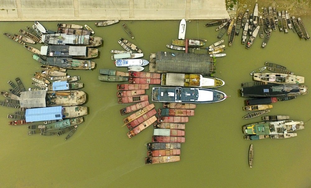 這是2019年12月17日在湖南常德漢壽縣蔣家嘴鎮(zhèn)拍攝的停靠在洞庭湖邊的漁船(無人機照片)。2020年1月1日零時起,長江流域332個自然保護區(qū)和水產(chǎn)種質(zhì)資源保護區(qū)全面禁止生產(chǎn)性捕撈。長江流域各地重點水域也相繼進入為期十年的常年禁捕期。