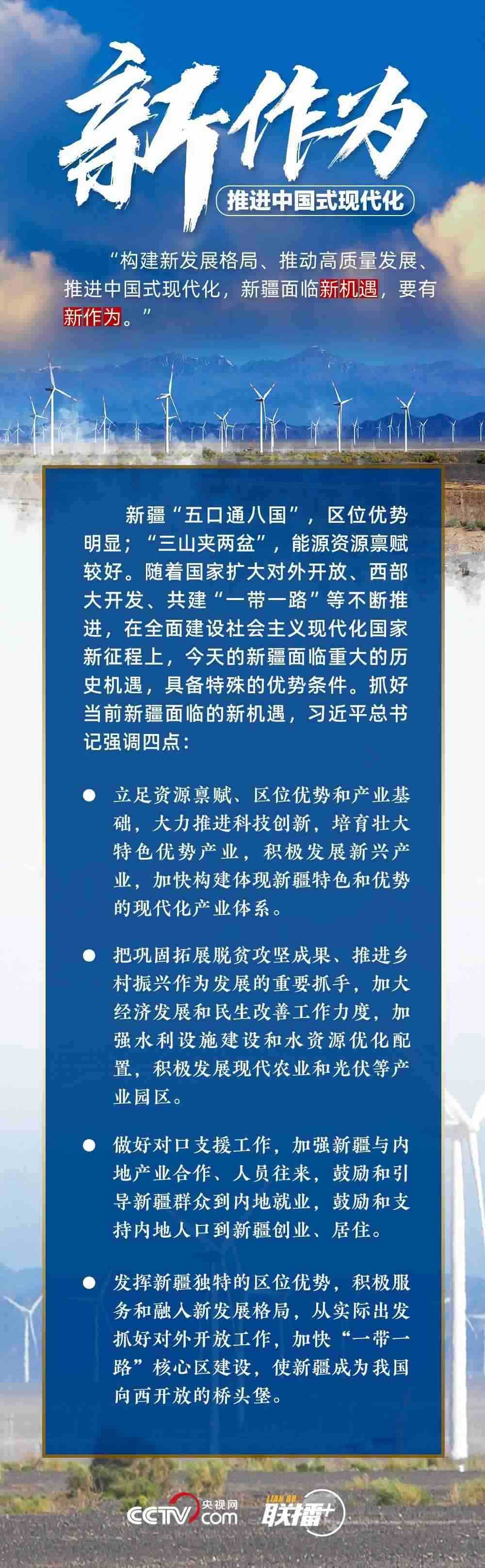講話中,習(xí)近平總書記對(duì)做好新疆工作提出一系列重要要求。央視網(wǎng)《聯(lián)播+》特?cái)X取總書記講話中的關(guān)鍵要點(diǎn),與您一起學(xué)習(xí)。