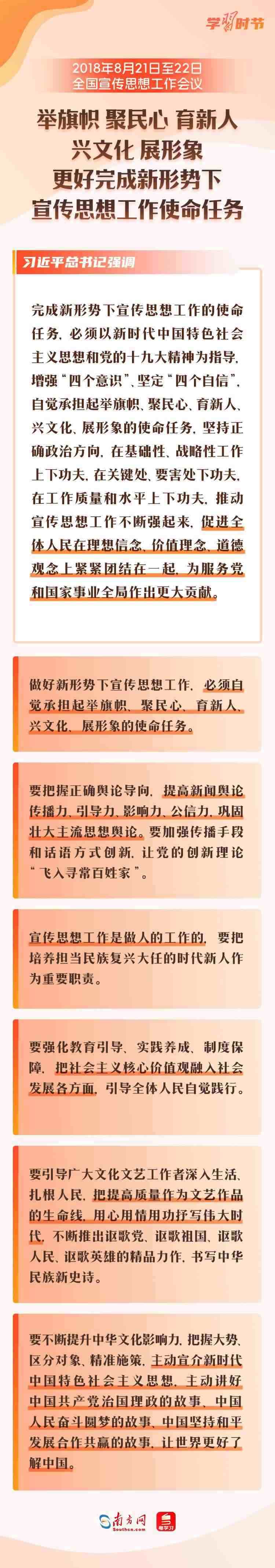 宣傳思想文化工作事關黨的前途命運,事關國家長治久安,事關民族凝聚力和向心力,是一項極端重要的工作。黨的十八大以來,宣傳思想文化工作之所以取得歷史性成就,最根本就在于有習近平總書記領航掌舵,有習近平新時代中國特色社會主義思想科學指引。讓我們一同回顧剛剛召開的全國宣傳思想文化工作會議,以及2018年、2013年召開的兩次全國宣傳思想工作會議,看看總書記通過這三次會議,為宣傳思想文化工作劃出了哪些重點。