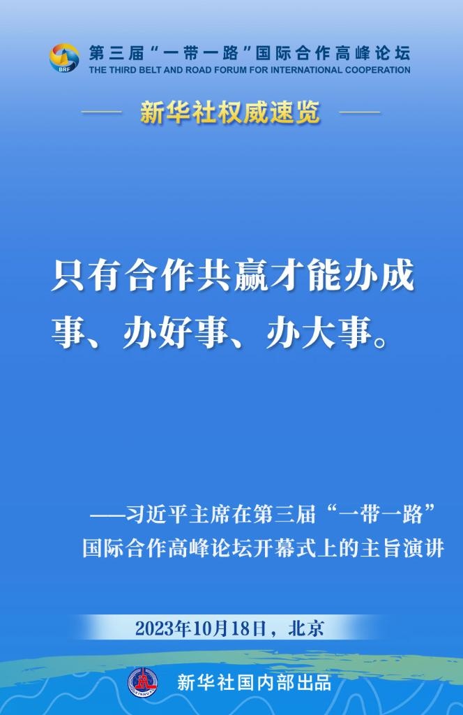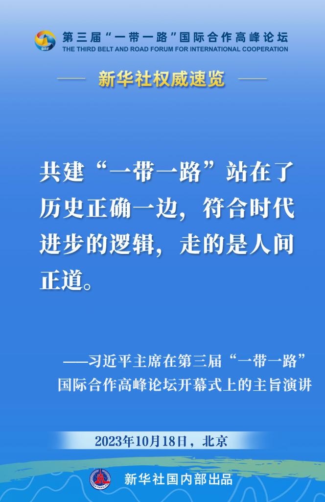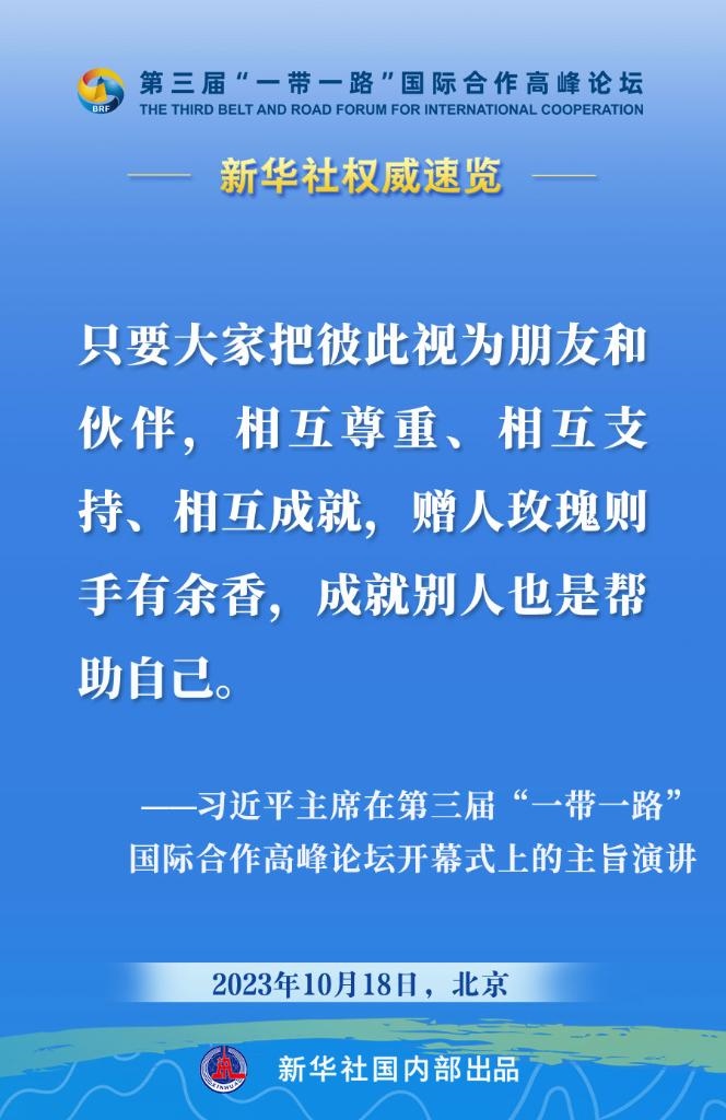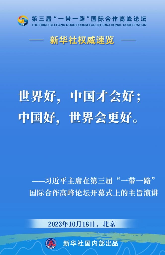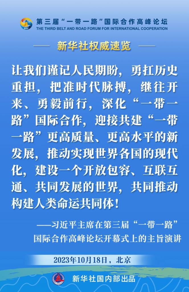 10月18日,國家主席習(xí)近平在第三屆“一帶一路”國際合作高峰論壇開幕式上發(fā)表主旨演講。一起來看金句?! ?/p>