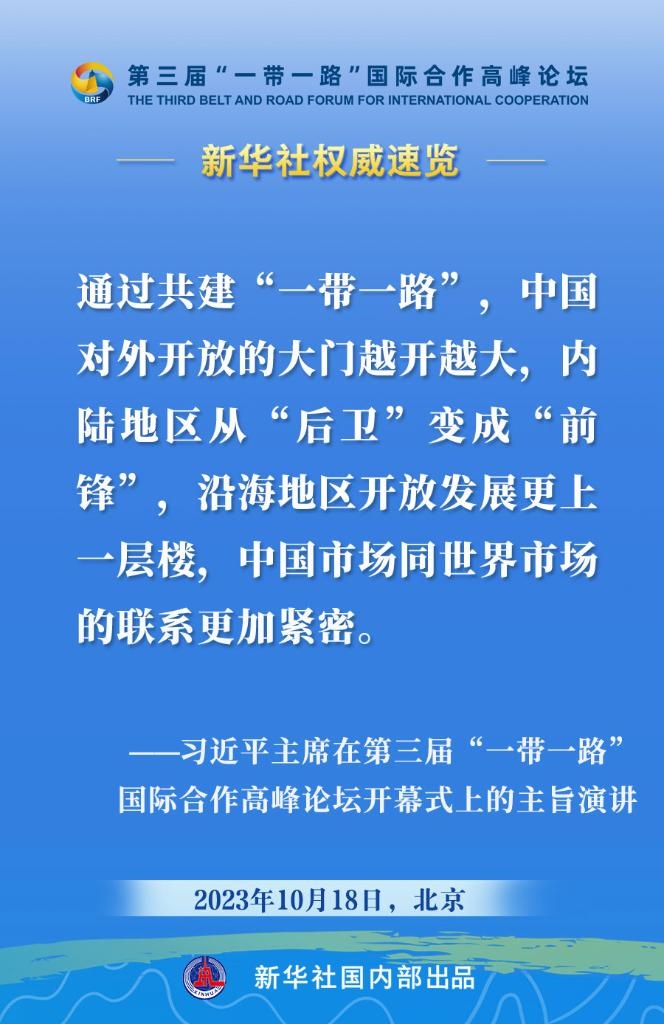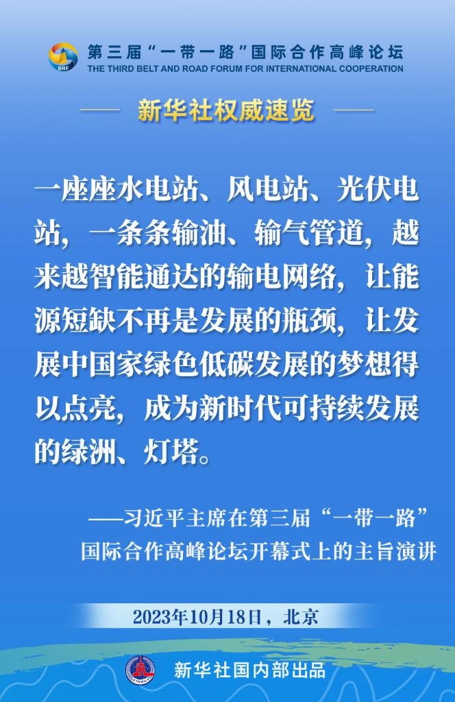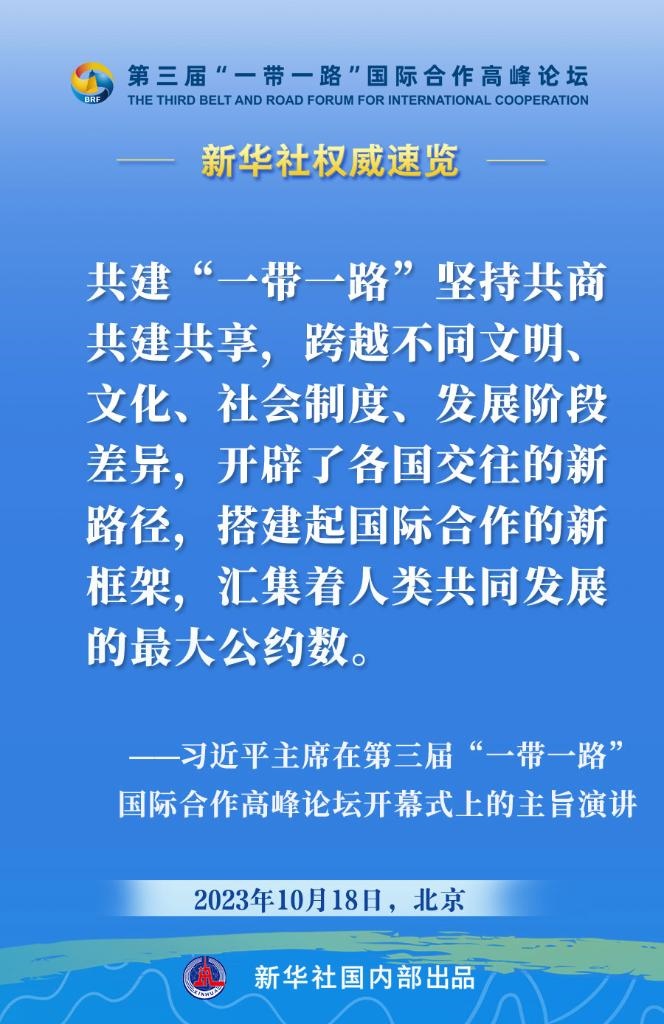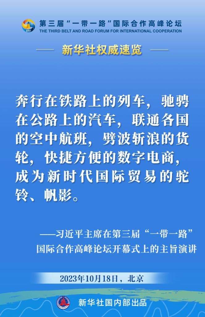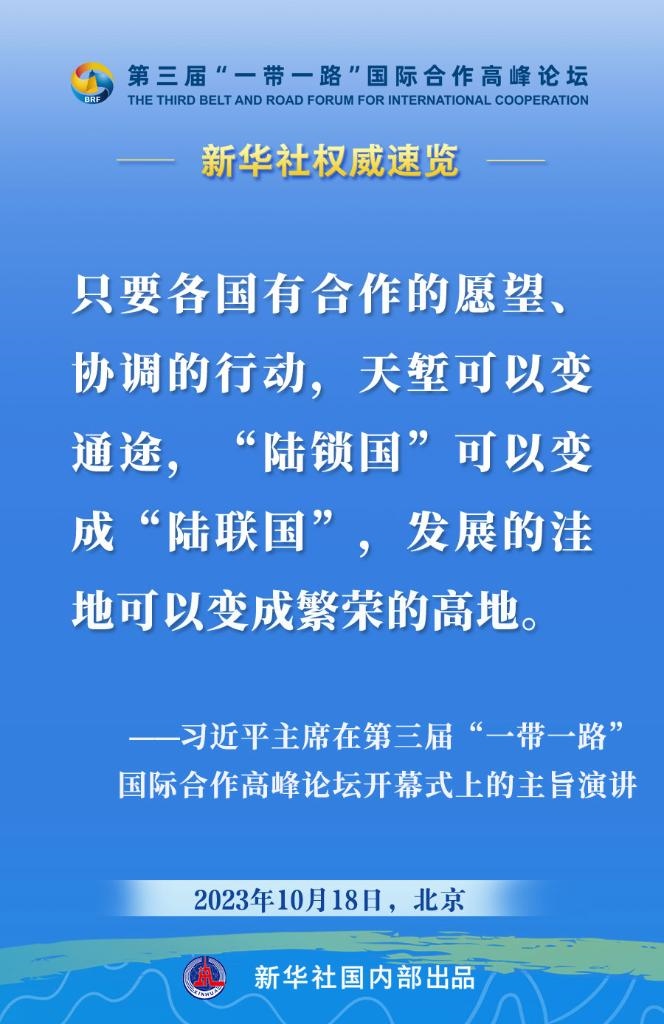 10月18日,國家主席習(xí)近平在第三屆“一帶一路”國際合作高峰論壇開幕式上發(fā)表主旨演講。一起來看金句?! ?/p>