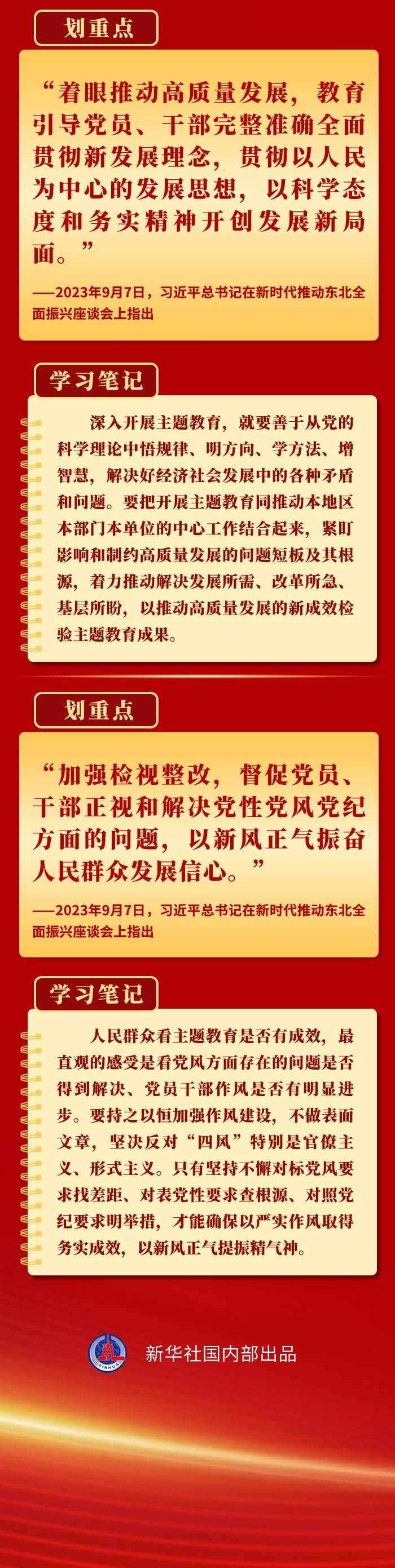 當(dāng)前,第二批學(xué)習(xí)貫徹習(xí)近平新時(shí)代中國(guó)特色社會(huì)主義思想主題教育扎實(shí)推進(jìn)。9月以來(lái),習(xí)近平總書(shū)記在黑龍江、浙江、江西考察時(shí),對(duì)第二批主題教育工作提出明確要求,為持續(xù)開(kāi)展好這件“事關(guān)全局的大事”指明方向。一起學(xué)習(xí)。