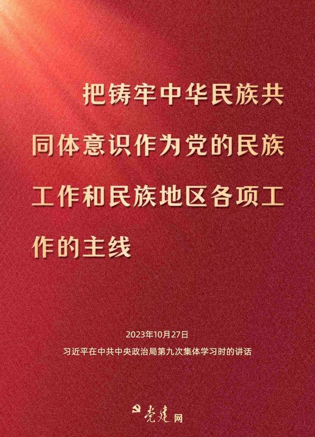 中共中央政治局10月27日下午就鑄牢中華民族共同體意識(shí)進(jìn)行第九次集體學(xué)習(xí),習(xí)近平總書記主持學(xué)習(xí)并發(fā)表重要講話??靵?lái)一圖學(xué)習(xí)總書記關(guān)于鑄牢中華民族共同體意識(shí)的精彩論述!
