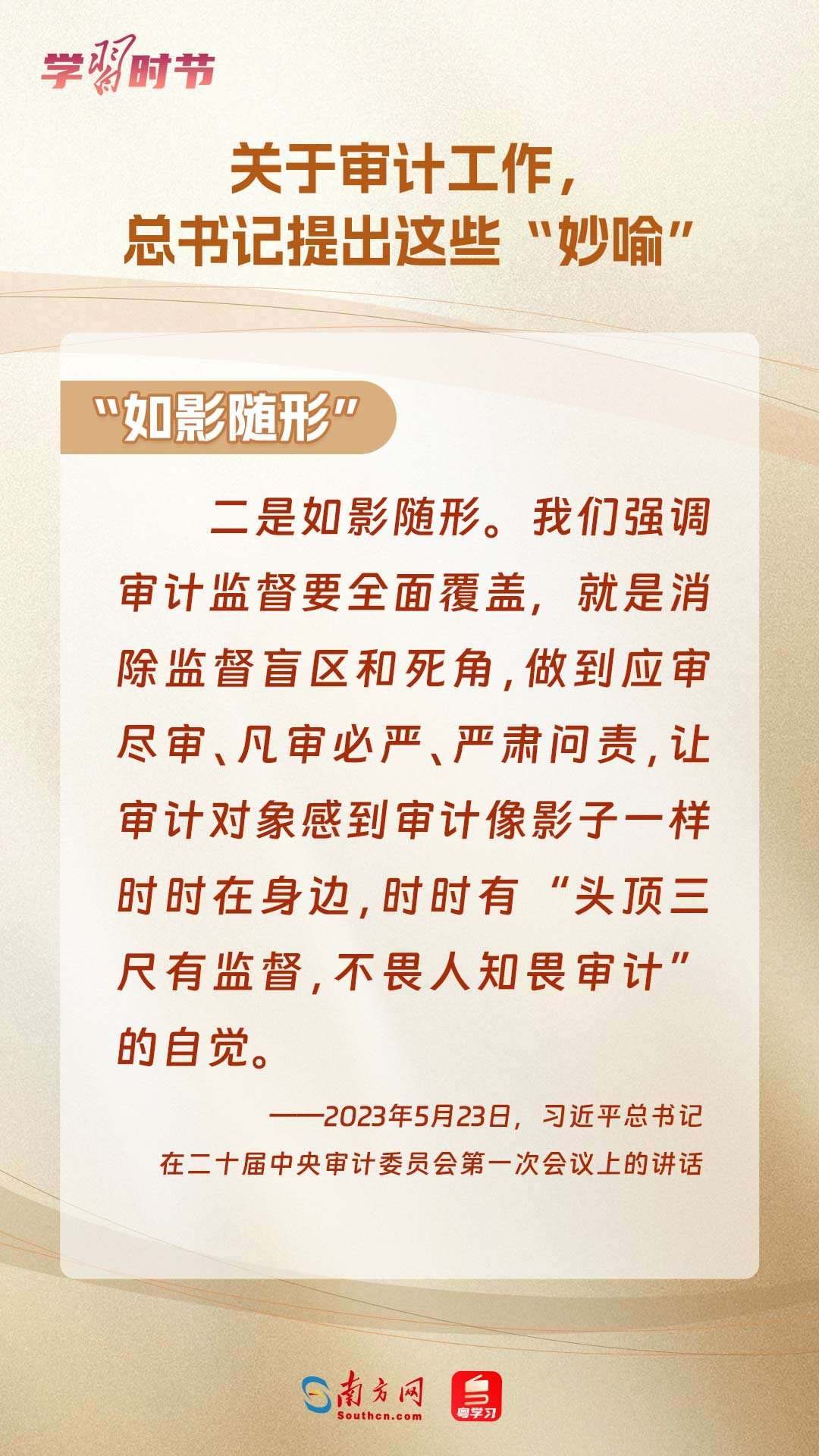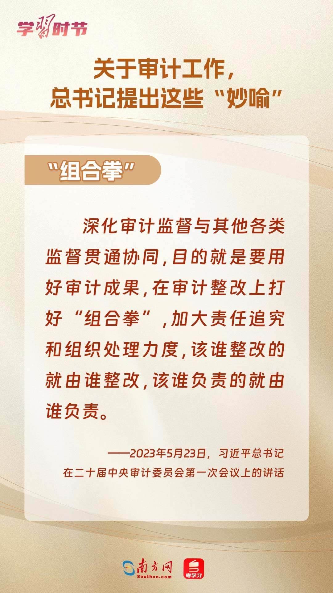 11月1日出版的《求是》雜志刊登了習(xí)近平總書記在二十屆中央審計(jì)委員會(huì)第一次會(huì)議上的講話全文。總書記在重要講話中“妙喻”審計(jì)工作,讓我們一同學(xué)習(xí)。