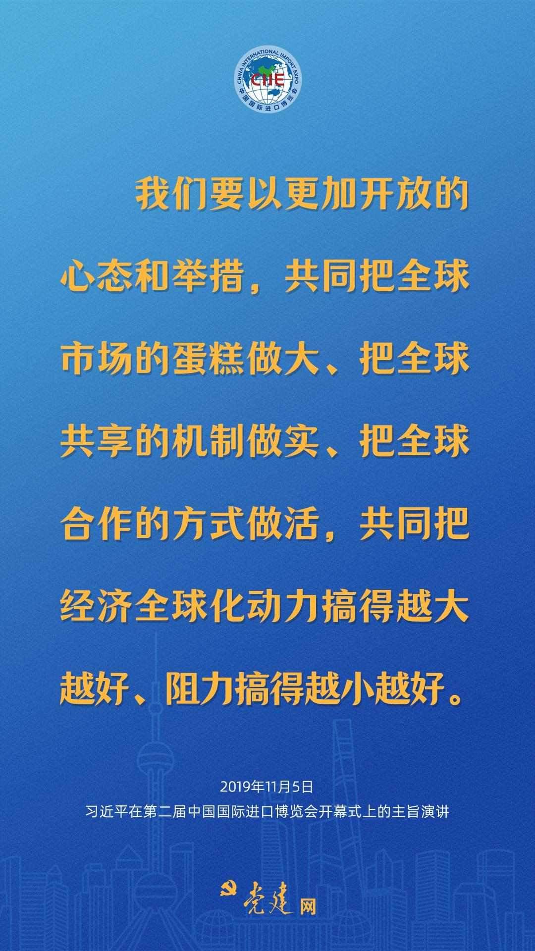 11月5日,國(guó)家主席習(xí)近平向第六屆中國(guó)國(guó)際進(jìn)口博覽會(huì)致信,繼續(xù)釋放開放強(qiáng)音。快來一圖學(xué)習(xí)習(xí)近平總書記六年來對(duì)進(jìn)博會(huì)的精彩寄語(yǔ)!