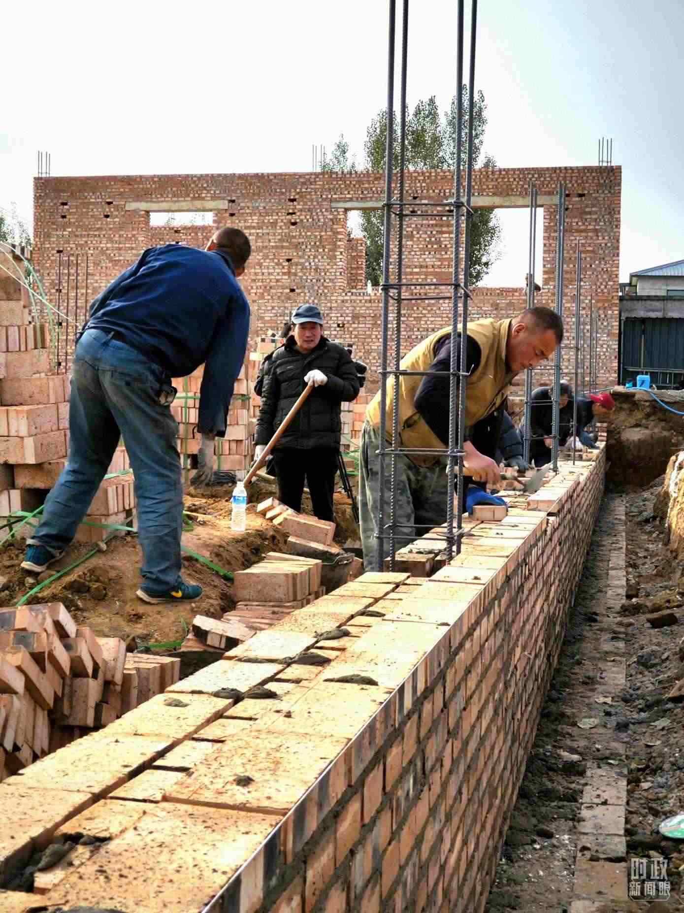 △ 刁窩鎮(zhèn)萬(wàn)全莊村,施工隊(duì)在建設(shè)新房。(總臺(tái)央視記者郁振一拍攝)