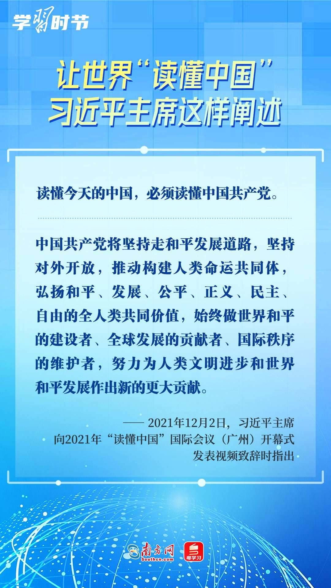 習(xí)近平主席高度重視“讀懂中國(guó)”國(guó)際會(huì)議,多次會(huì)見與會(huì)代表、向會(huì)議致辭或致賀信,闡述中國(guó)的發(fā)展道路、改革開放、對(duì)外政策等,讓我們一同學(xué)習(xí)。