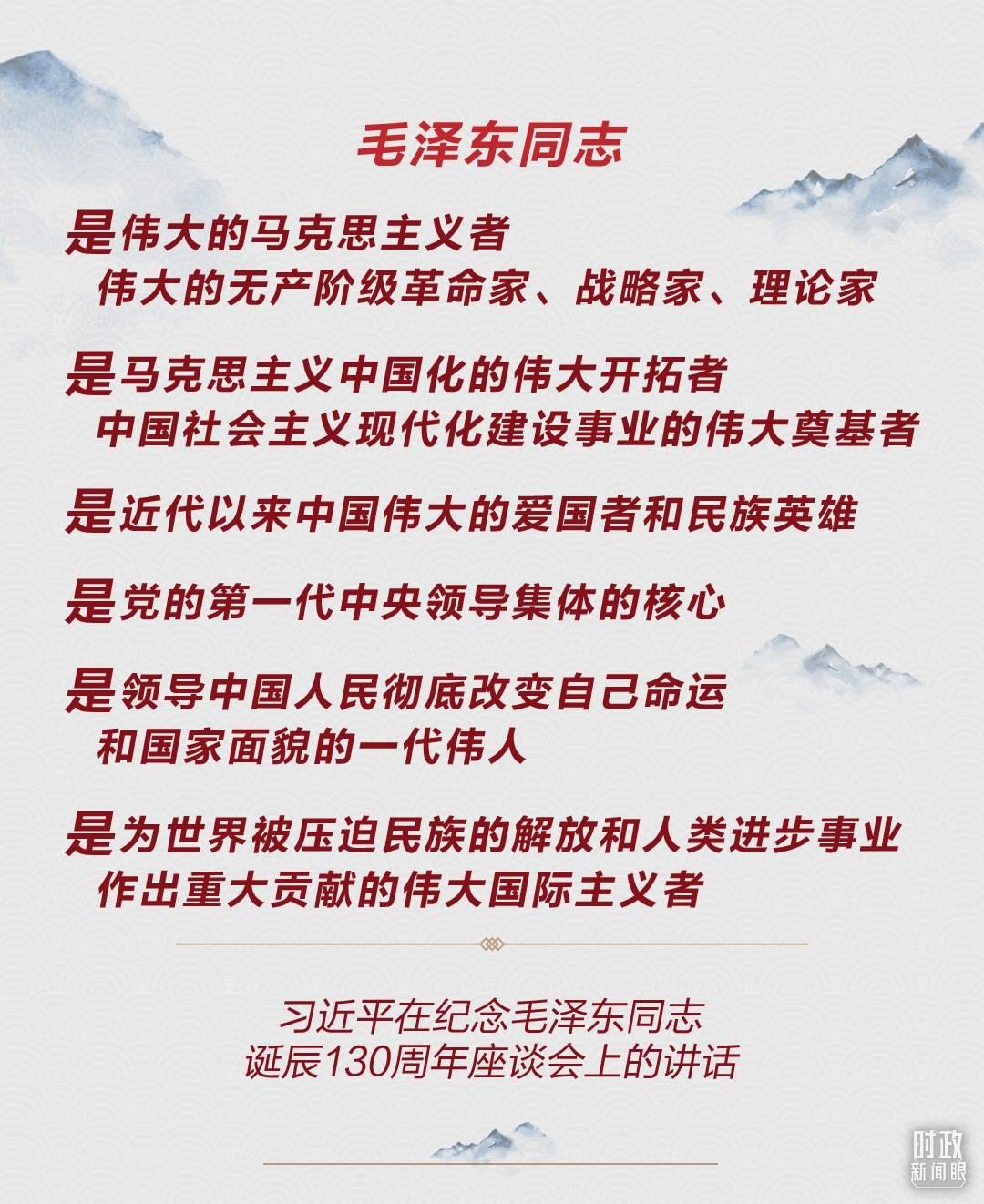 《時(shí)政新聞眼》注意到,與10年前的講話相比,總書記在今年這次座談會(huì)上增加了兩個(gè)新的表述:毛澤東同志是“中國(guó)社會(huì)主義現(xiàn)代化建設(shè)事業(yè)的偉大奠基者”,“是為世界被壓迫民族的解放和人類進(jìn)步事業(yè)作出重大貢獻(xiàn)的偉大國(guó)際主義者”。