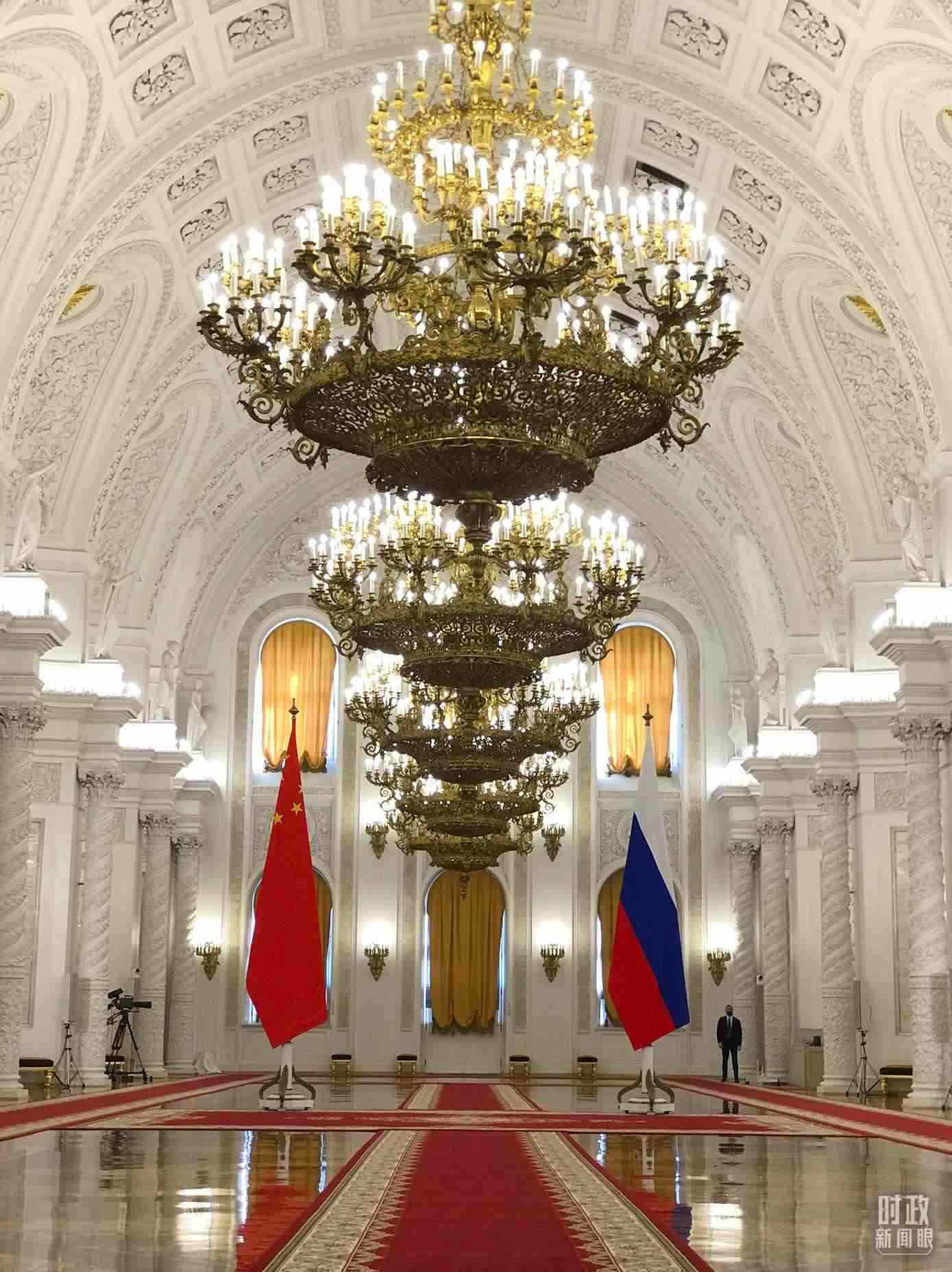 △ 2023年3月,應(yīng)俄羅斯總統(tǒng)普京邀請(qǐng),習(xí)近平主席對(duì)俄羅斯進(jìn)行國(guó)事訪問(wèn)。圖為克里姆林宮喬治大廳,習(xí)主席在這里同普京總統(tǒng)握手合影。(總臺(tái)央視記者石偉明拍攝)