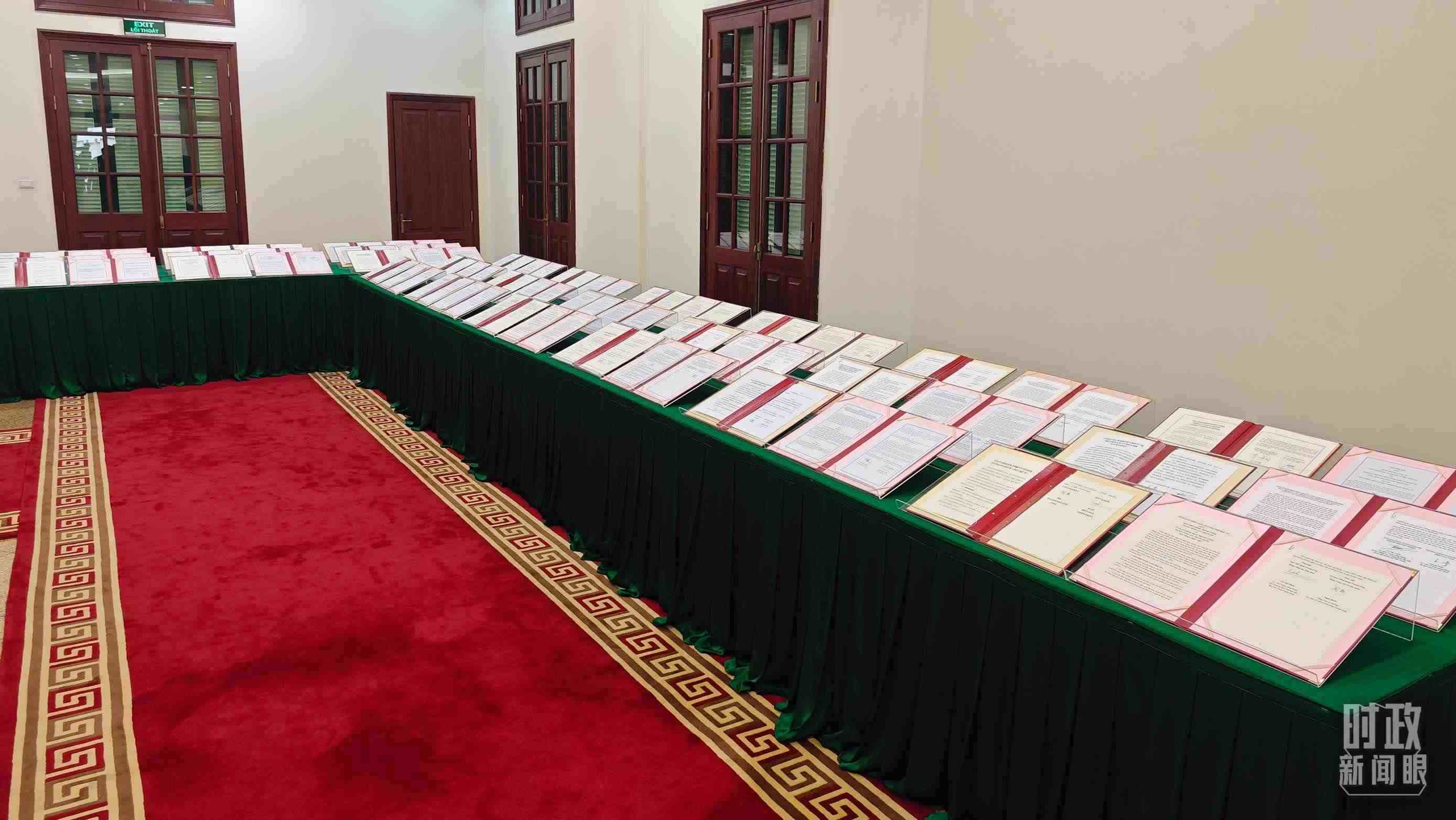 △ 2023年12月,習(xí)近平主席抵達(dá)越南河內(nèi),開(kāi)啟年內(nèi)的第四次出訪。圖為中越雙方簽署的雙邊合作文件展示,涵蓋共建“一帶一路”等30多個(gè)領(lǐng)域。(總臺(tái)央視記者耿小龍拍攝)