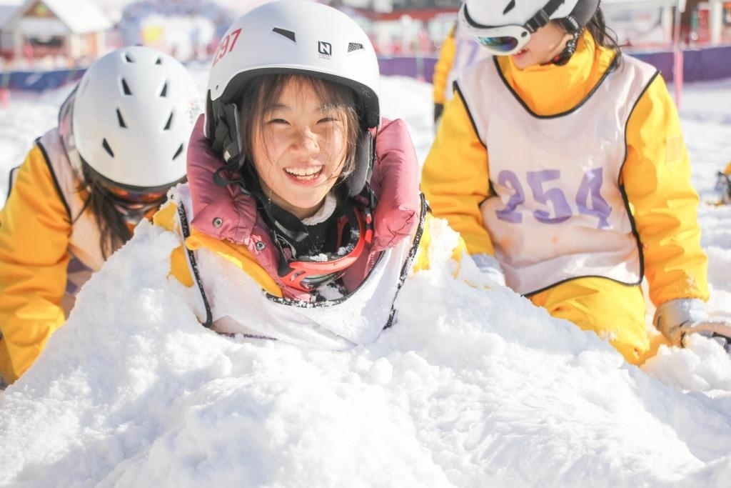 放眼這片銀白色樂(lè)園,有人在教練指導(dǎo)下,努力掌握滑雪技巧,小心翼翼挪動(dòng)著步伐;有人充滿自信地從山坡滑下,展示著各種帥氣動(dòng)作,引來(lái)陣陣歡呼。不遠(yuǎn)處,孩子們?cè)谘┑乩锉寂芡嫠?,歡笑聲充斥整個(gè)雪場(chǎng)。