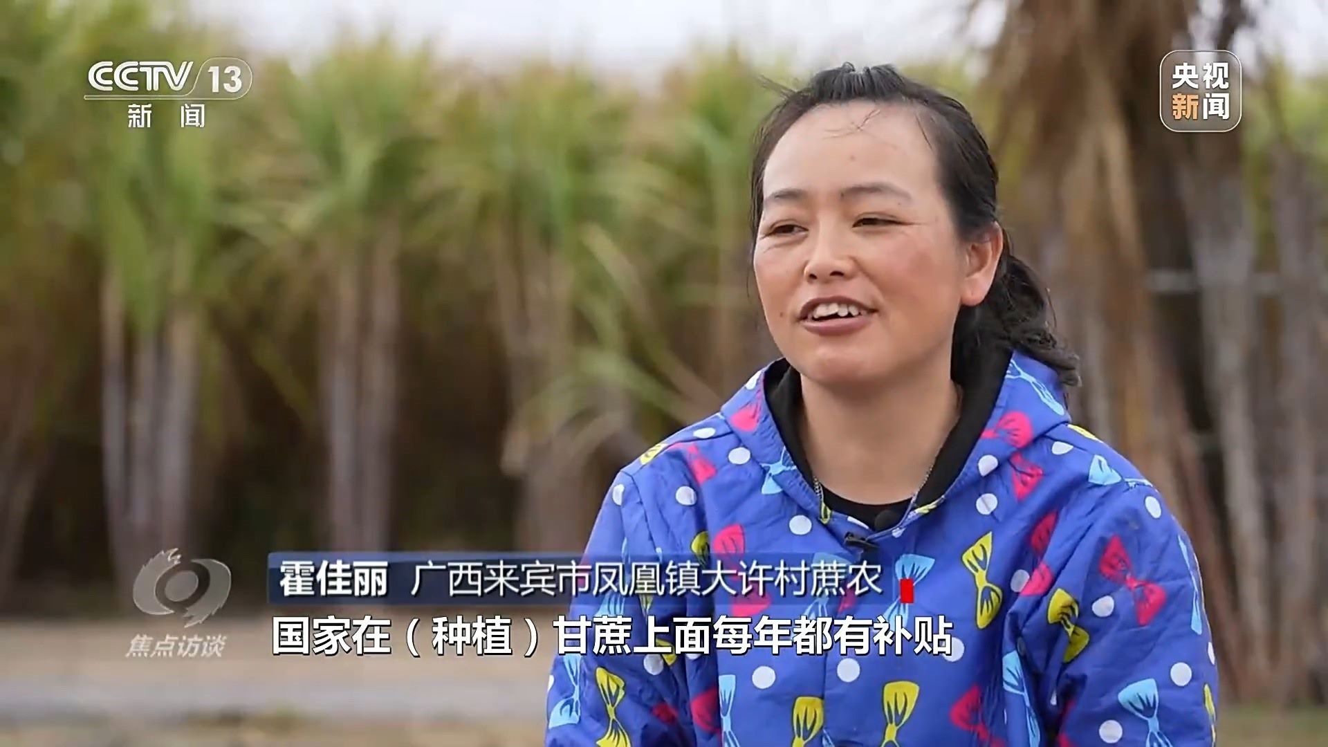 霍佳麗:“國家在(種植)甘蔗上面每年都有補貼,有甘蔗種苗的補貼,整地的機耕費也有補貼?!?/p>