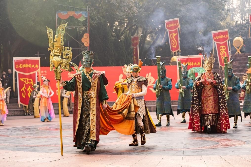 大年初一,三星堆博物館的古蜀祭祀巡游活動(dòng)。(三星堆博物館供圖)