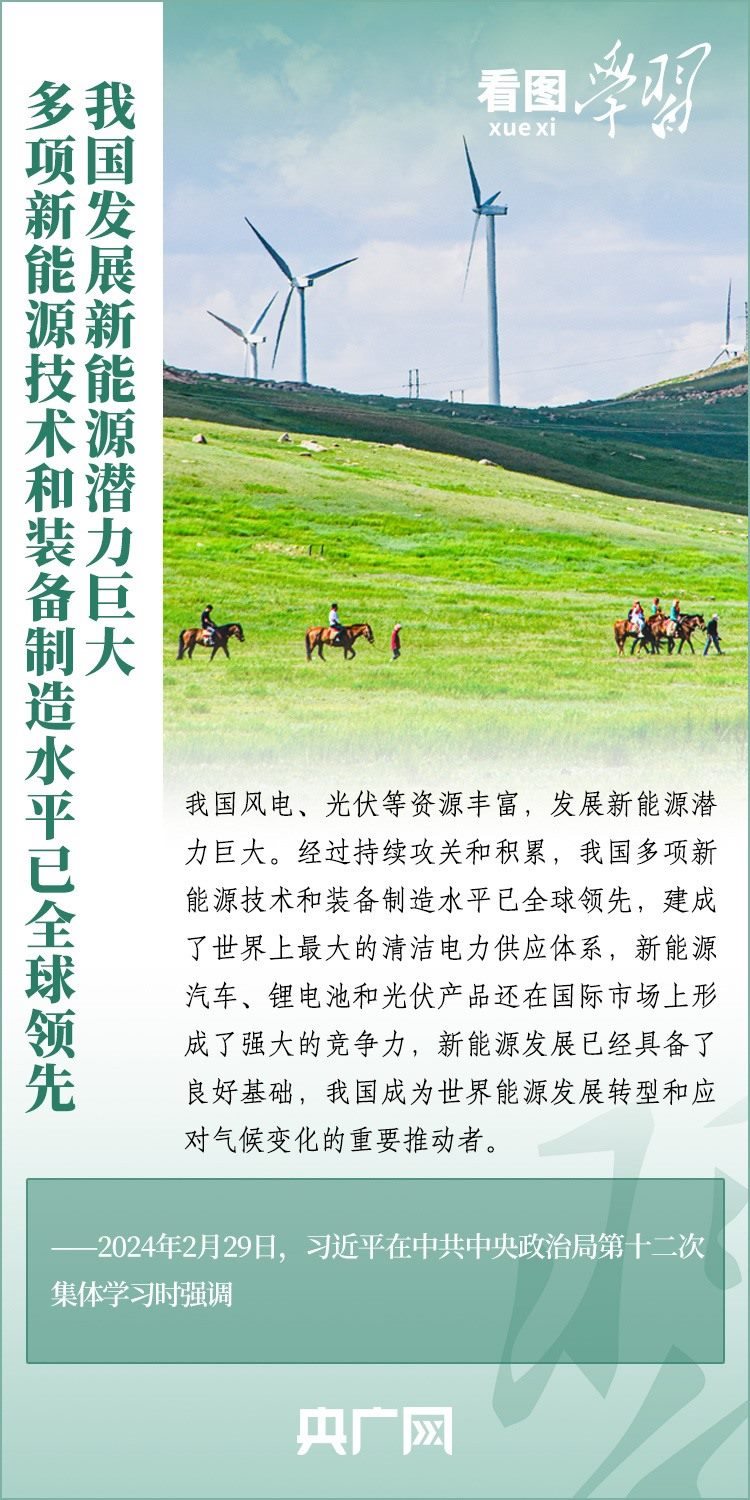 能源安全事關(guān)經(jīng)濟社會發(fā)展全局。2月29日,習(xí)近平總書記在中共中央政治局第十二次集體學(xué)習(xí)時強調(diào),我們要順勢而為、乘勢而上,以更大力度推動我國新能源高質(zhì)量發(fā)展,為中國式現(xiàn)代化建設(shè)提供安全可靠的能源保障,為共建清潔美麗的世界作出更大貢獻。一起來學(xué)習(xí)!